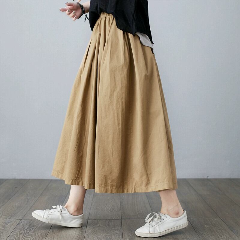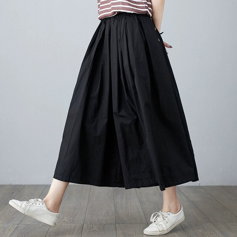 綿とリネンのワイドレッグパンツの女性の新しい夏ルーズ脂肪ミリメートルソリッドカラーの弾性ウエストワイド裾スリムカジュアルリネン 9 点パンツスカート コットン エラスティック 伸縮 サマー 夏物 sine56396101312