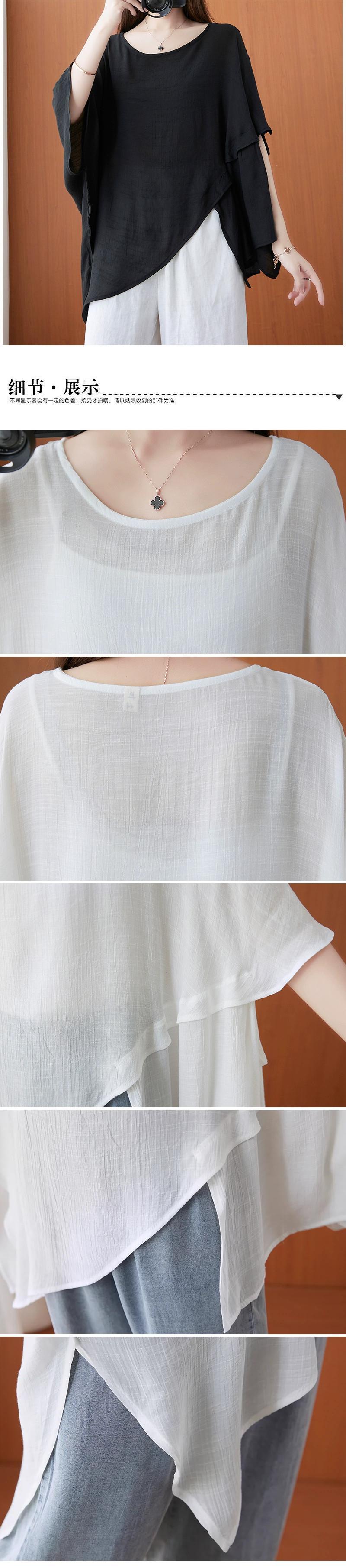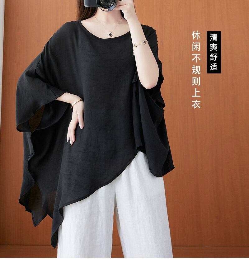 不規則な半袖トップの女性、夏スタイル、ルーズなデザイン、黒い腹部カバーバットシャツ、Tシャツ、プラスサイズの婦人服 ブラック 大きめサイズ サマー 夏物 sine85167385277