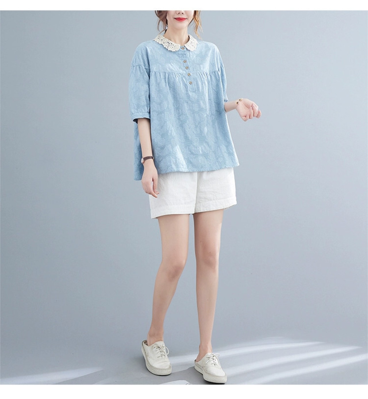 プラスサイズの女性のベビードールシャツ夏 2021 ルーズファット mm 西洋スタイルジャカードレーススプライシング半袖 Tシャツトップ 大きめサイズ サマー 夏物 sine46091863552