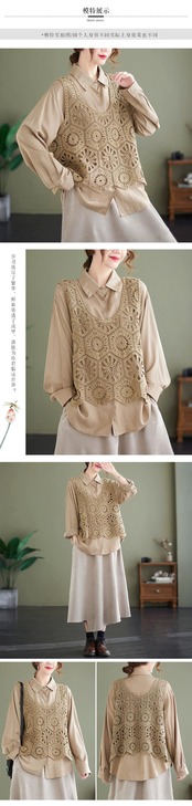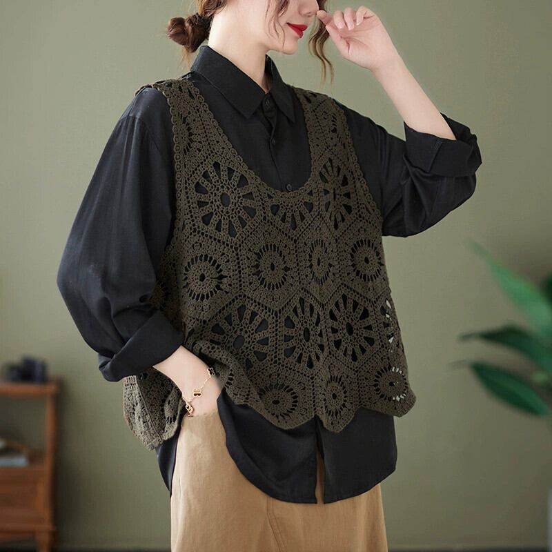 ニットサスペンダーベスト女性 2022 春と夏ルーズでスリミング中空かぎ針編みノースリーブ大きいサイズアウターベストトップ 大きめサイズ スプリング 春物 サマー 夏物 sine94826007401