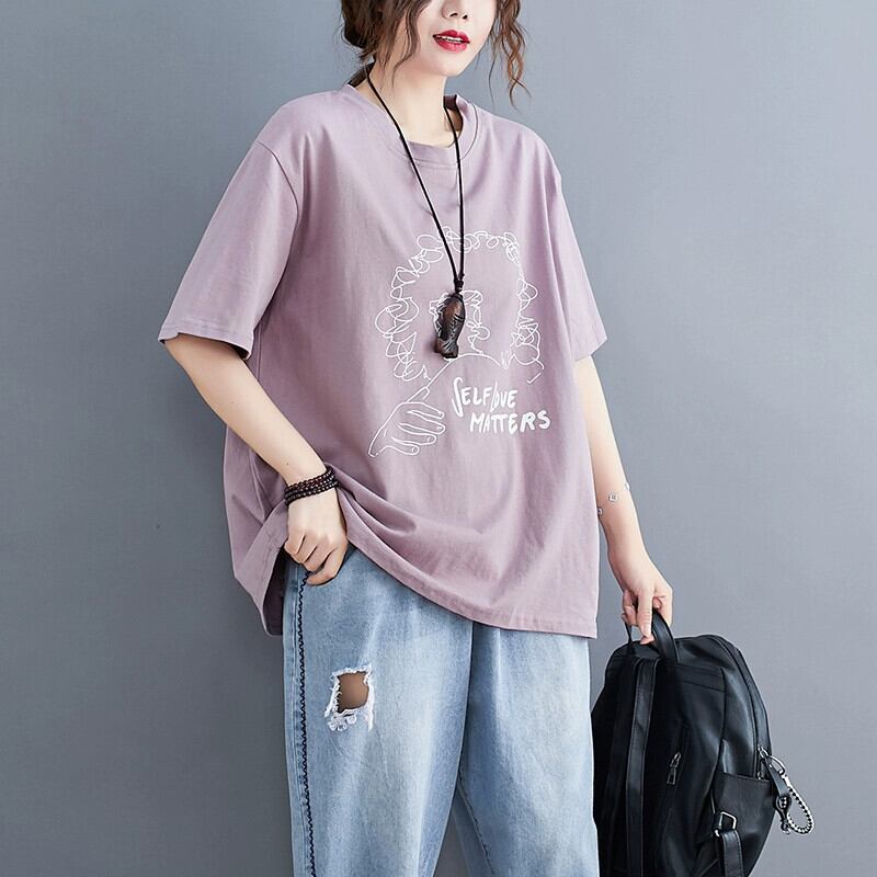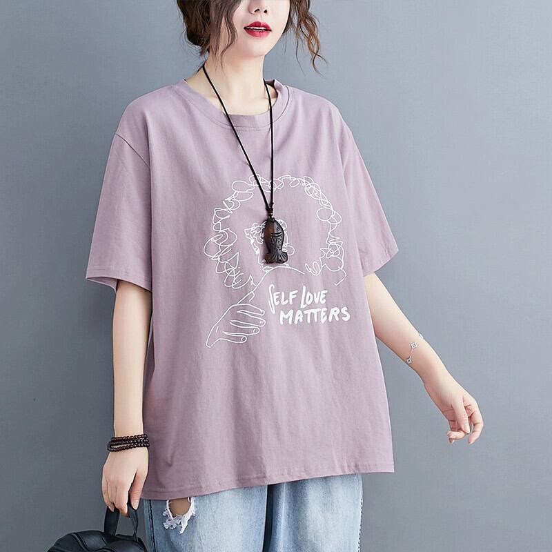 220 キャティーズプラスサイズの女性の夏 2021 ルーズファットシスターボトリングシャツトップレタープリント痩身半袖 Tシャツ女性 大きめサイズ サマー 夏物 sine90311905265