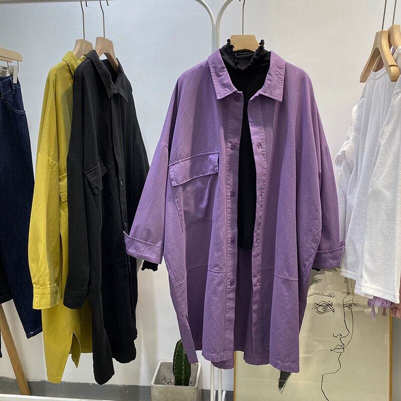 割引カウンターは、eign tradeラベルのクリアランスを撤回し、女性のミッドレングスピュアコットンルーズトップカジュアル長袖シャツ ロング sine48052791854