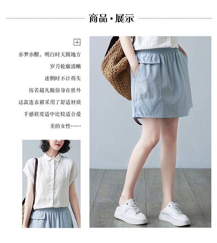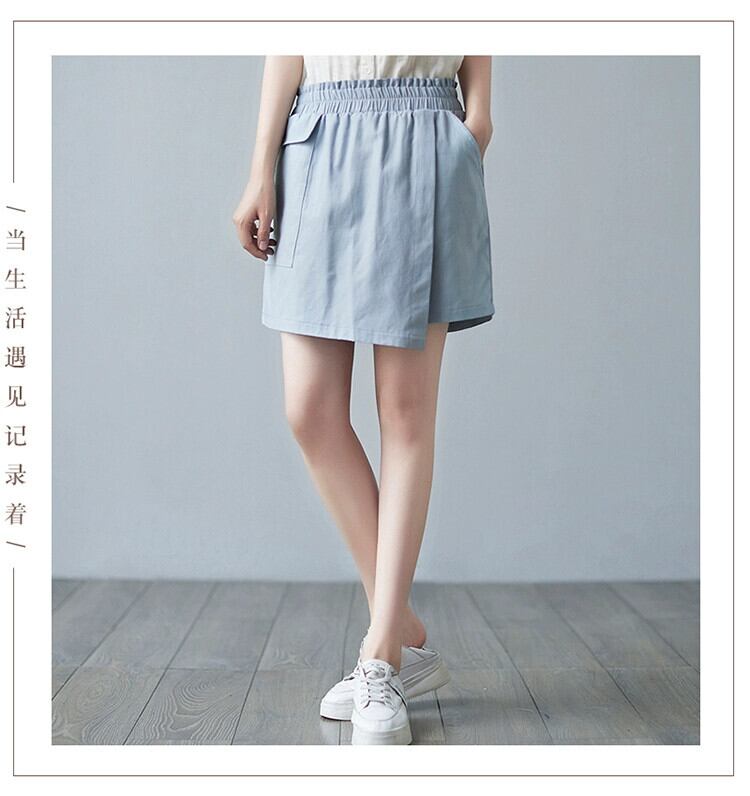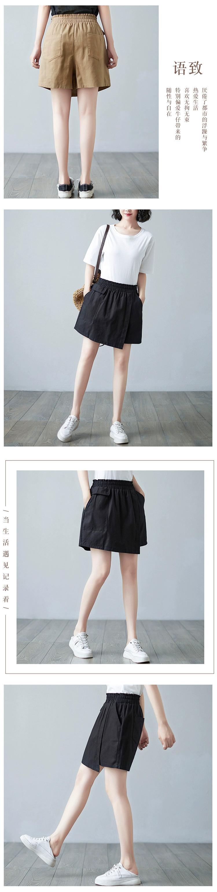 コットンとリネンのショートパンツの女性の夏 2021 新しい緩い大きいサイズソリッドカラーの弾性ウエスト偽ツーピースステッチカジュアルワイドレッグパンツスカート エラスティック 伸縮 大きめサイズ サマー 夏物 ショーツ ブルマー sine87322977514