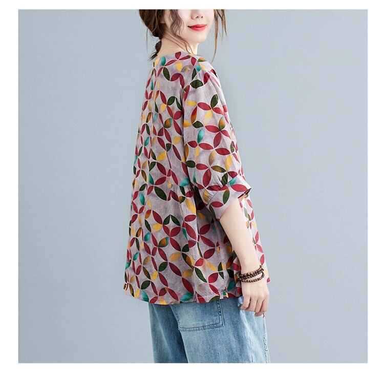 年齢を減らすプラスサイズの女性の半袖 T シャツ夏 2021 新しい緩い脂肪 mm 文学プリント薄い綿とリネンのトップ コットン 大きめサイズ サマー 夏物 Tシャツ sine94649827903
