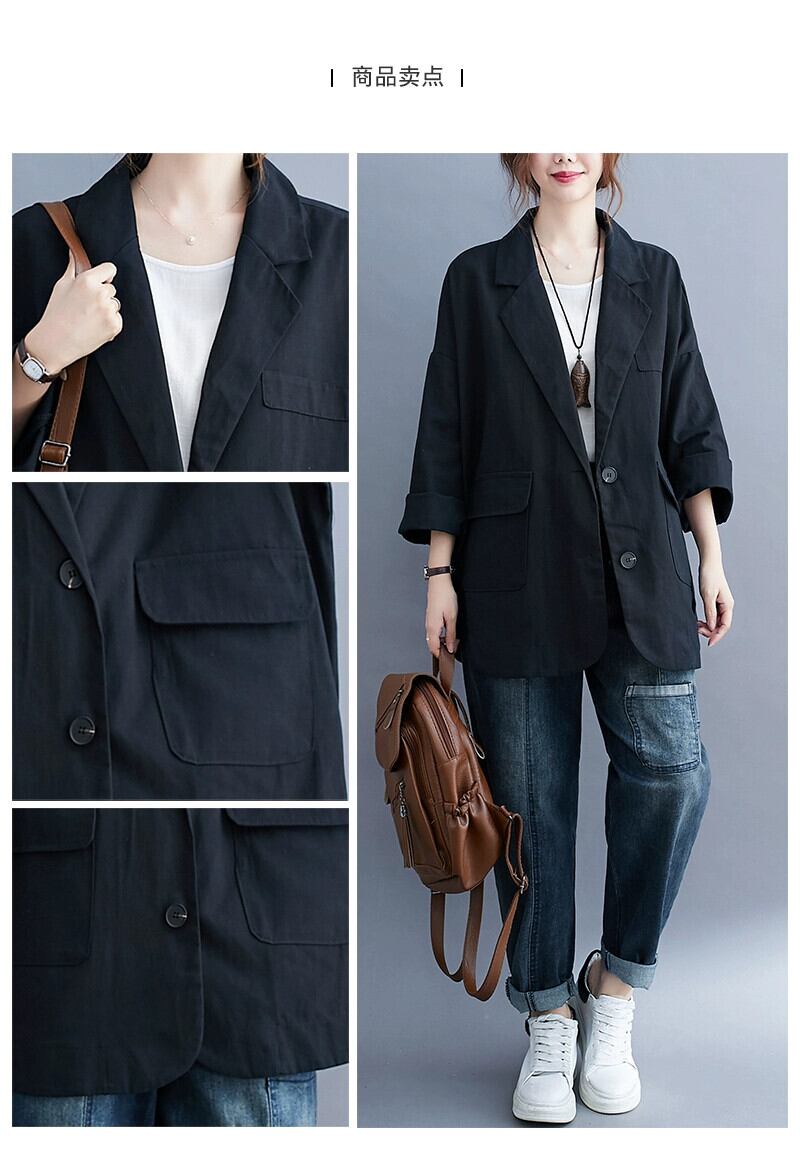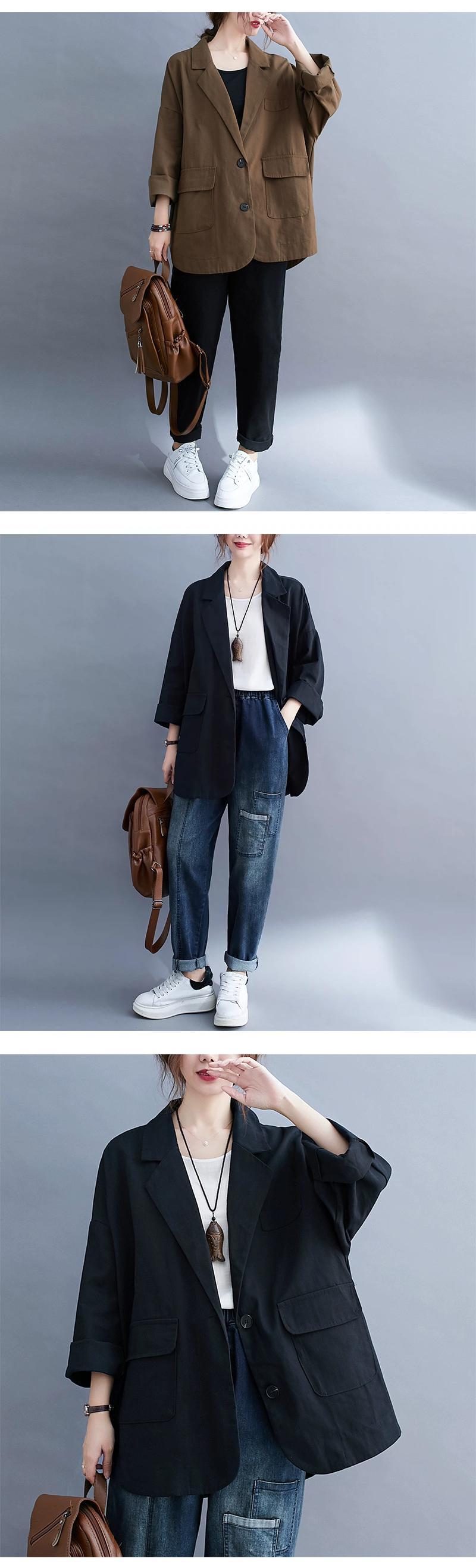 プラスサイズの女性の長袖スーツジャケット脂肪 mm 秋 2021 冬ルーズレトロ無地カジュアル 2 ボタントップ ロング 大きめサイズ オータム 秋物 ウィンター 冬物 ソリッドカラー sine94361126022