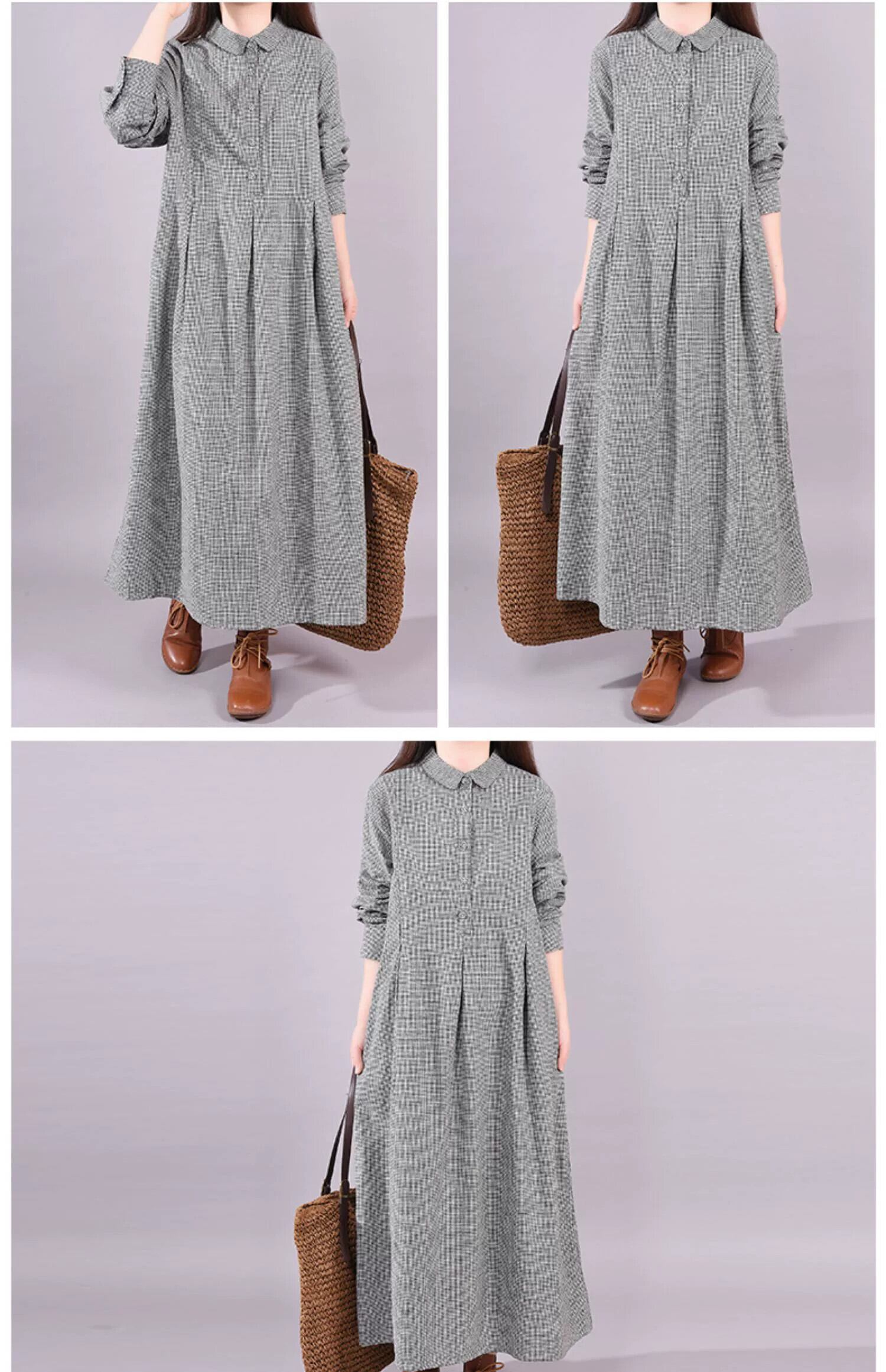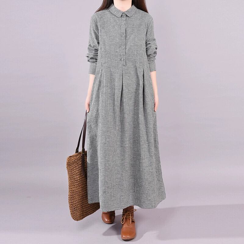 ディスカウントショッピングモール撤退ラストオーダークリアランスカットラベルレディース綿麻長袖ドレスチェック柄シャツリネンロングスカート コットン sine3126411896
