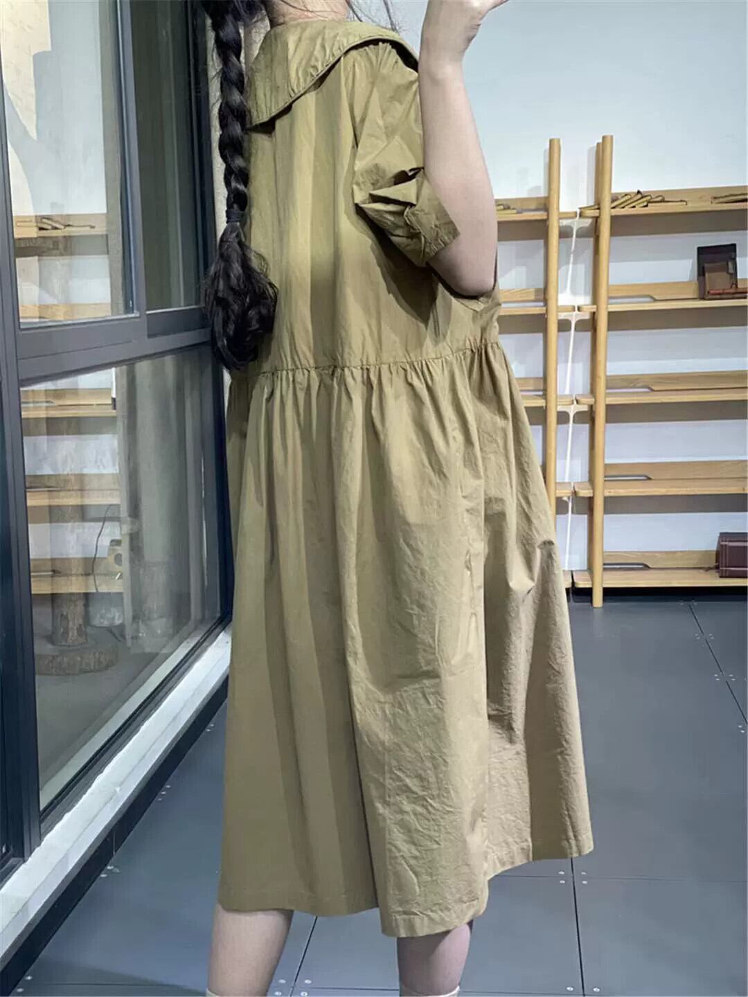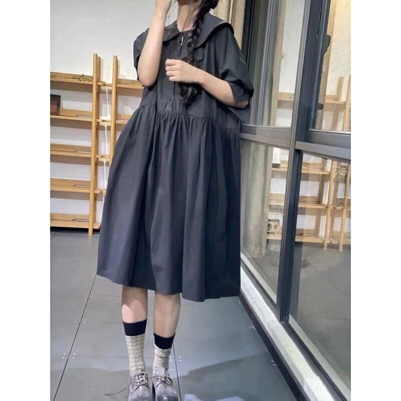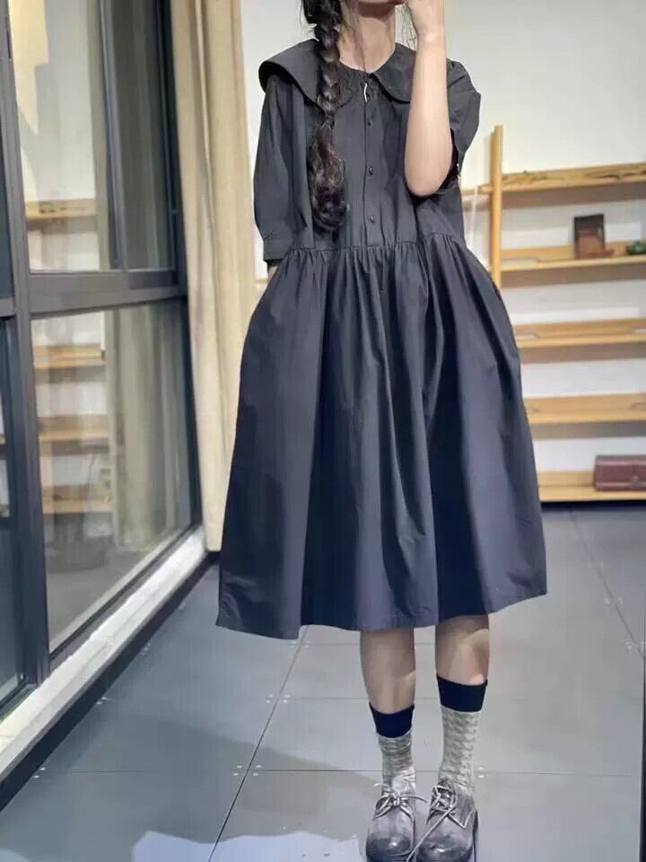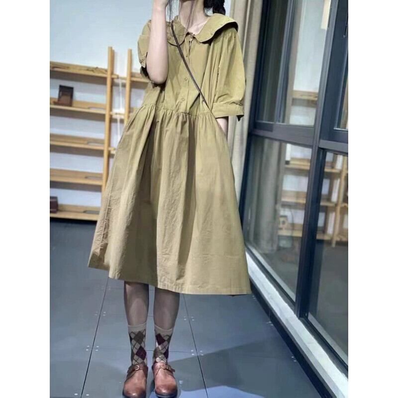 ese and eign trade オリジナルシングルテールグッズ ハイエンドの有名婦人服 年齢を軽減するドールカラー 半袖リネンシャツ コットンとリネンのドレス sine89609272205