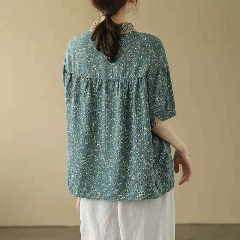 eign trade ese ラストオーダー クリアランス カット ラベル レディース エクスポート レース ラペル 花柄 半袖 Tシャツ コットン リネン シャツ トップ sine84255845999