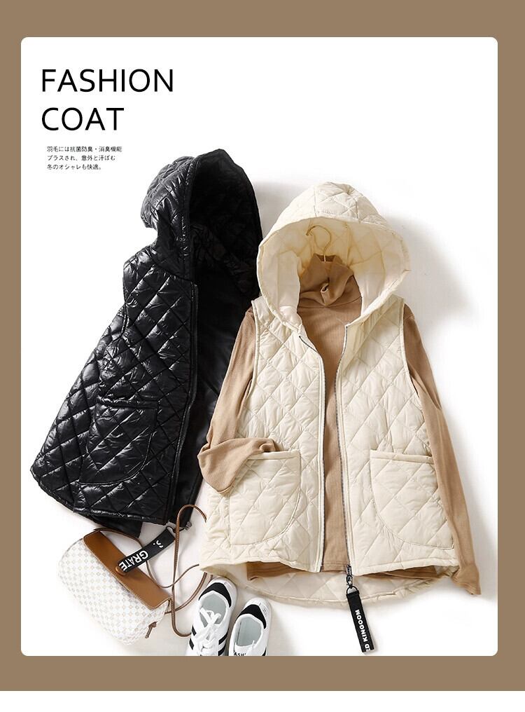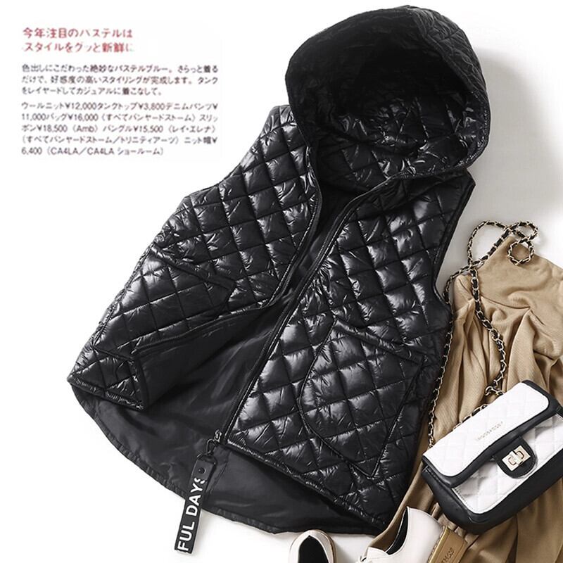 ese オリジナルシングル eign 貿易ビッグネーム女性のキルティング菱形フード付きベストジャケット厚く暖かい軽量ダウンコート冬 ウィンター 冬物 sine63433684743