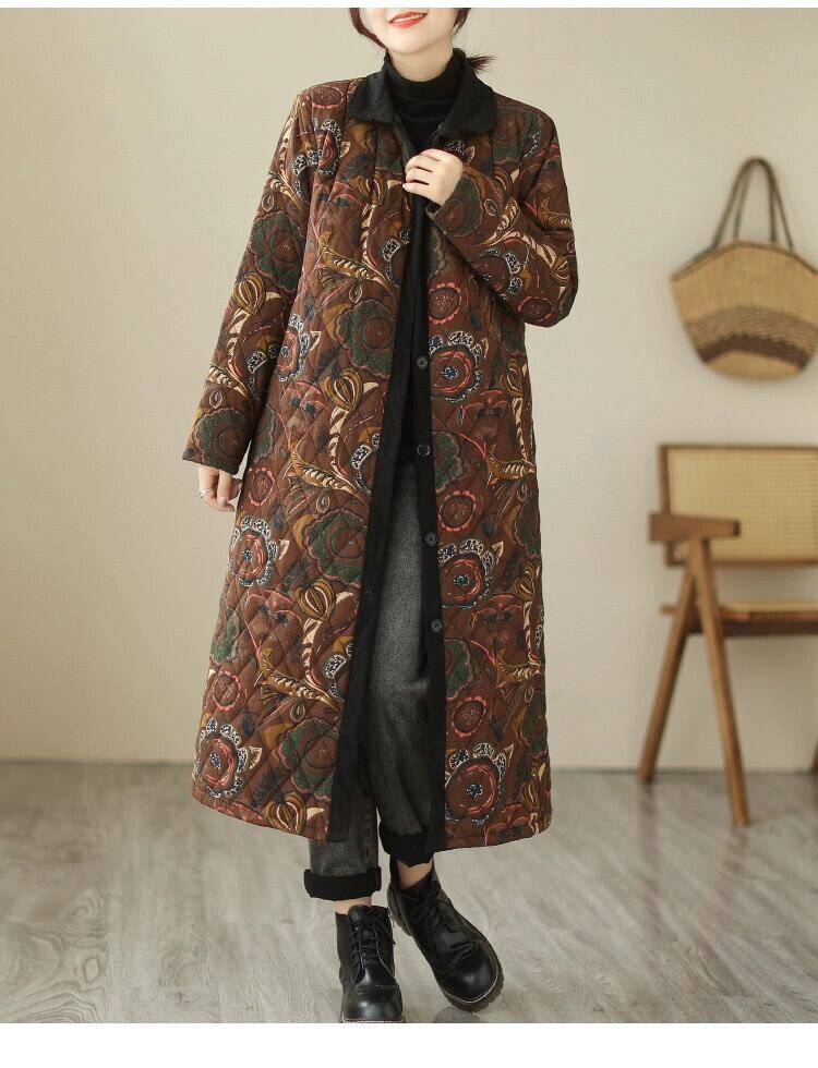 eign trade counter ブランドテールグッズ女性のレトロキルティングミッドレングス暖かい綿の服ルーズプリント肥厚暖かいジャケット コットン sine85924592180