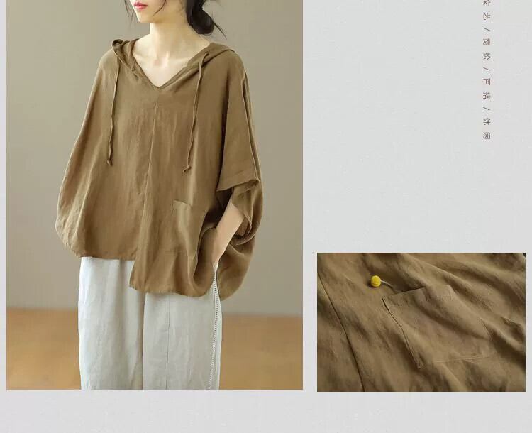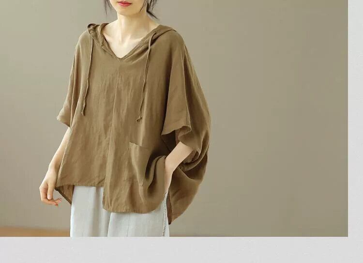 カットレーベルショッピングモール撤退レディースカジュアル綿麻薄手トップスゆったり大きいサイズ不規則なフード付き半袖Tシャツ コットン 大きめサイズ sine74636044019