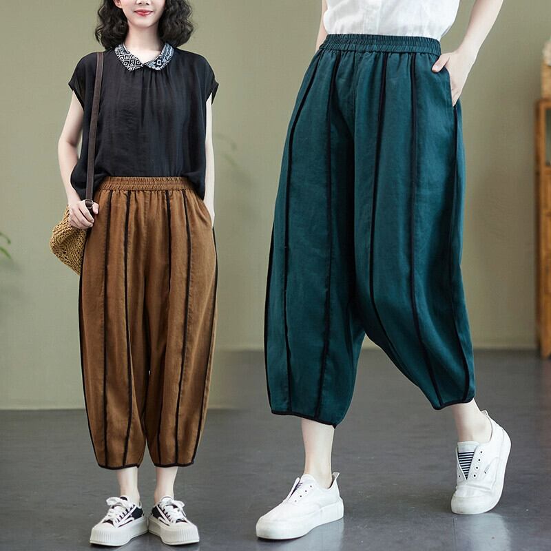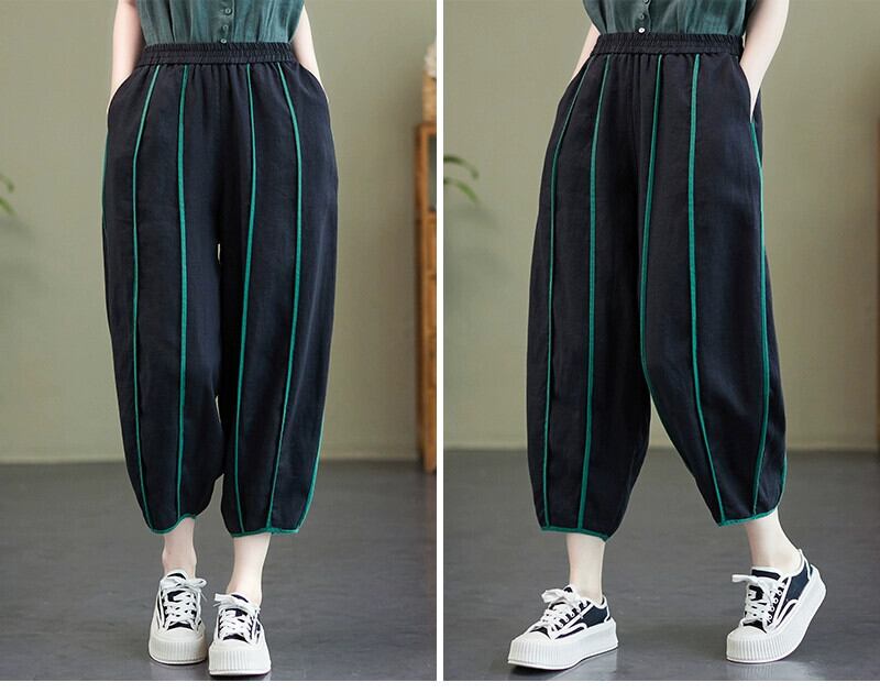 クリアランスリーク〜コットンとリネンのハーレムパンツレディース、ゆったり、大きいサイズ、ストライプ、ハイウエスト、カジュアル、9点リネンダッドパンツ 大きめサイズ sine43421984453