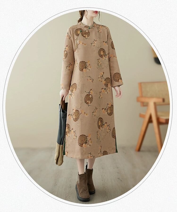 クリアランスリーク〜カウンター最後の在庫の女性の中国の改良されたプリントチャイナドレスレトロプラスベルベットの厚みのある綿とリネンのドレス コットン sine86327539428