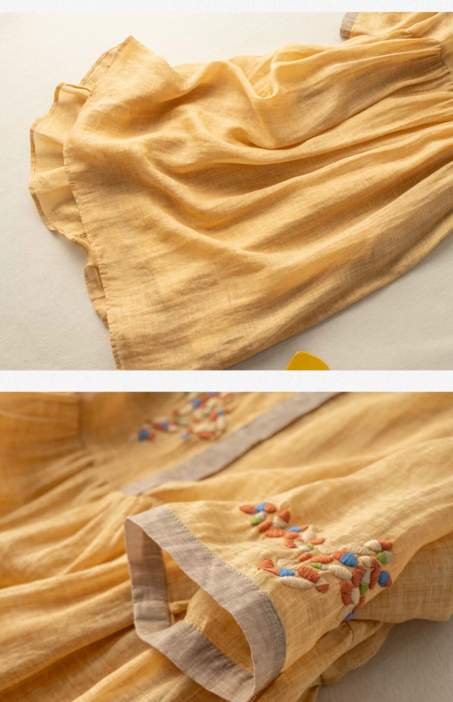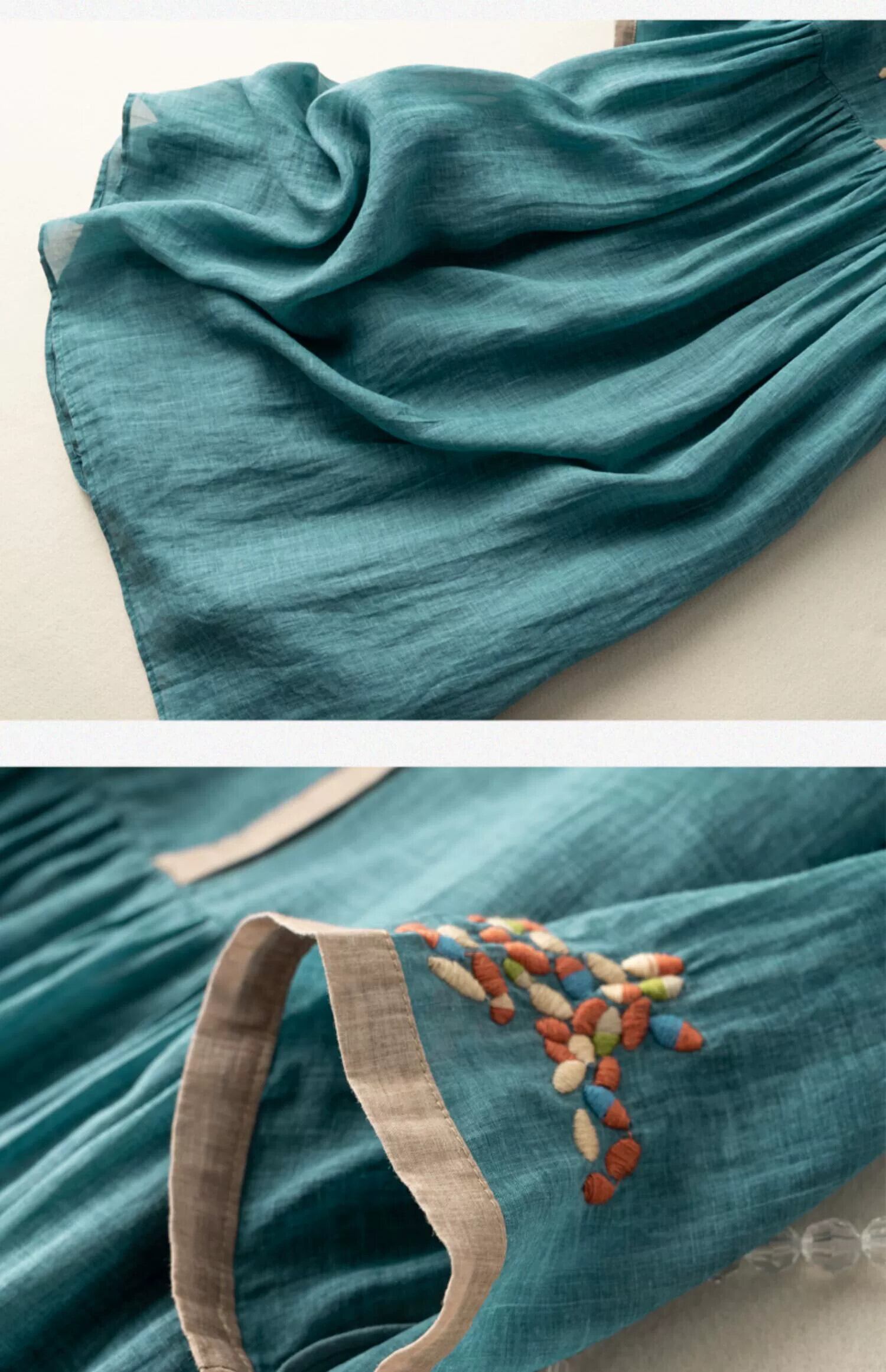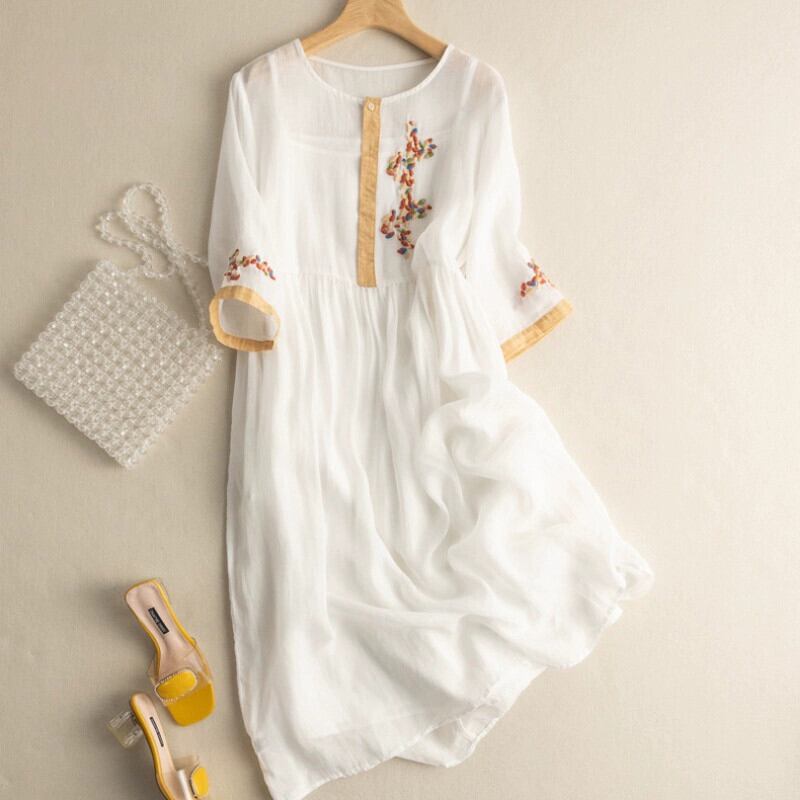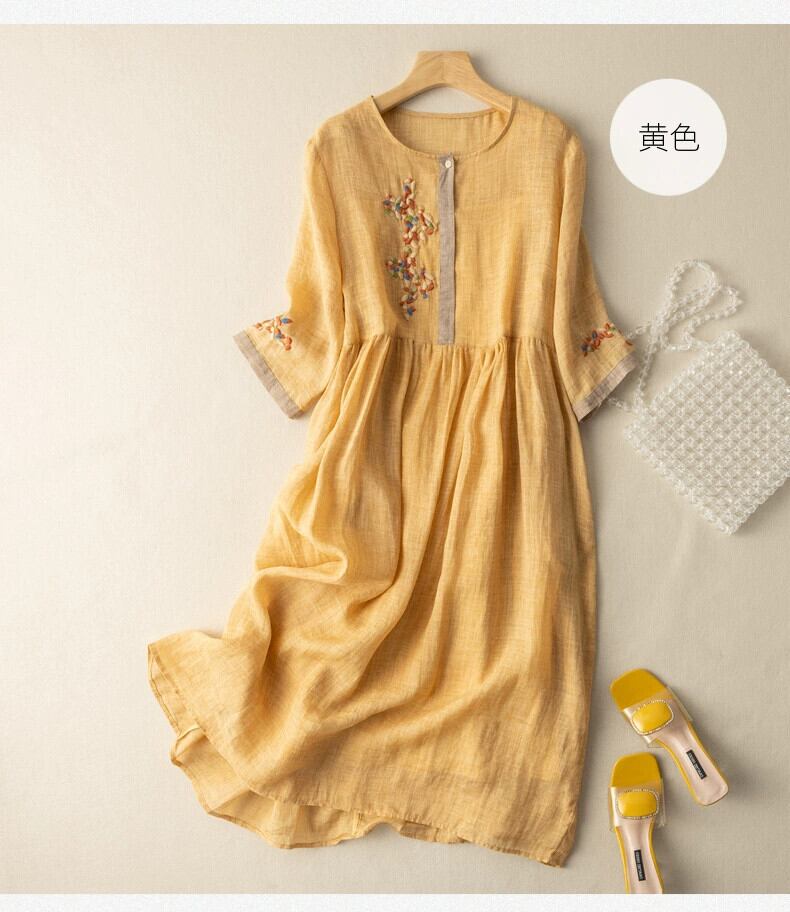 ショッピングモール削除ブランドカットラベルクリアランスフェミニン刺繍リネンチャイナロングスカートルーズ半袖コットンとリネンのドレス レッド sine12312896285