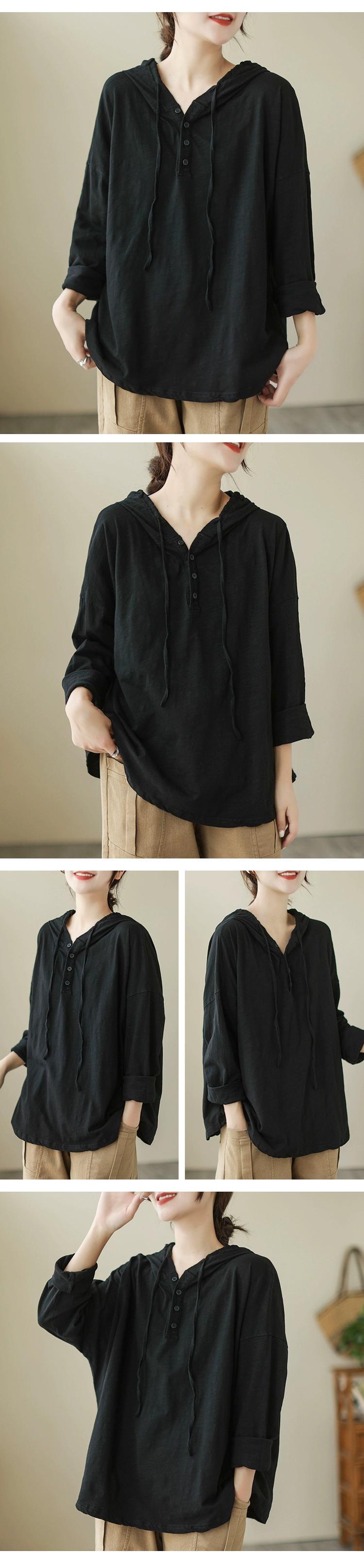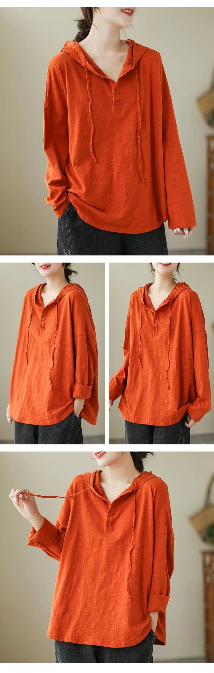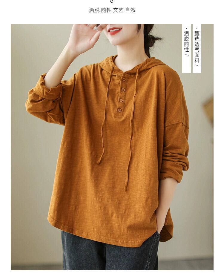 Eign Trade 輸出ブランドテールグッズ女性のルーズな大きいサイズ竹綿長袖 Tシャツカジュアルレトロフード付きスウェットシャツトップ ロング コットン 大きめサイズ sine89824605911