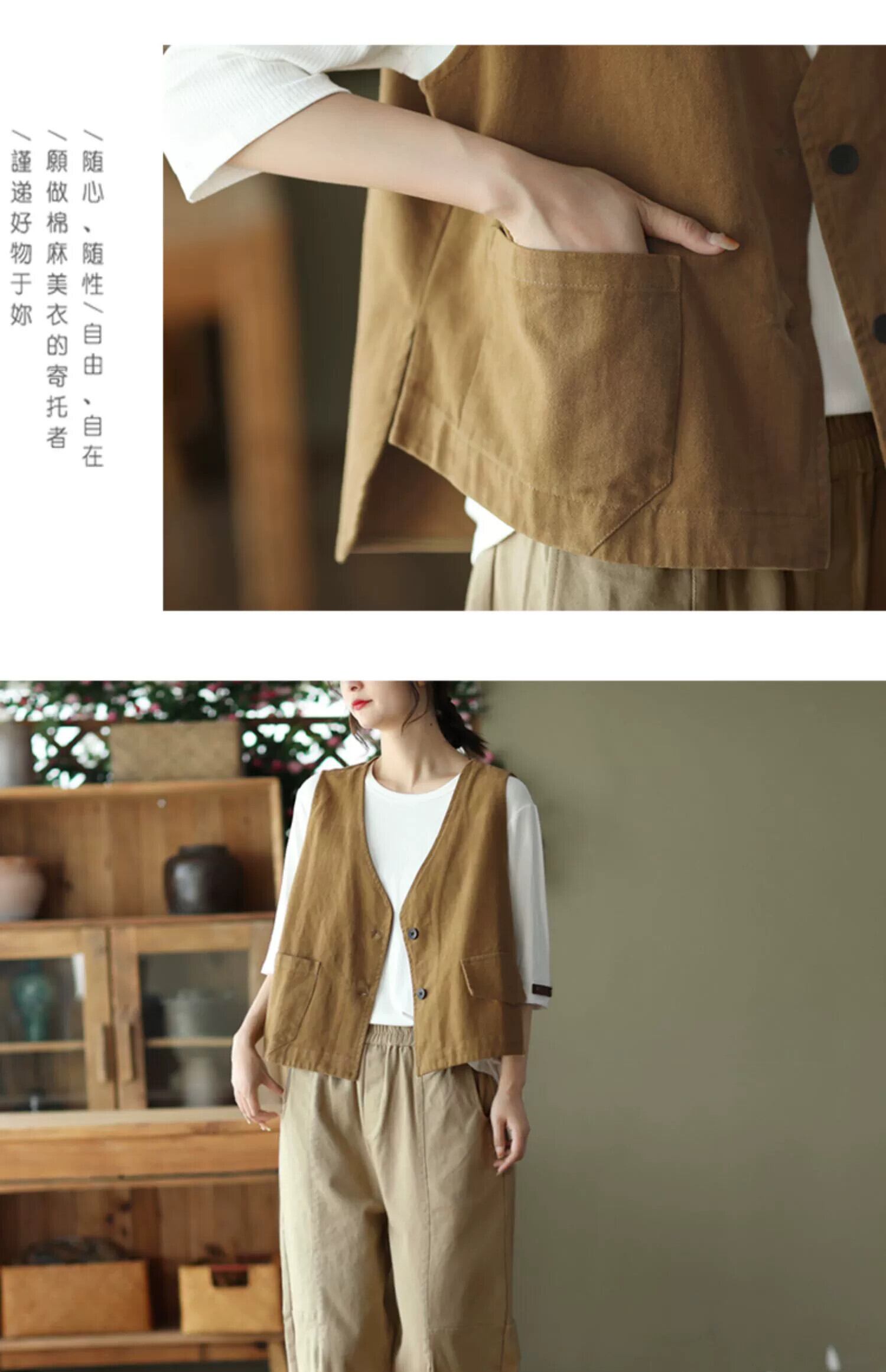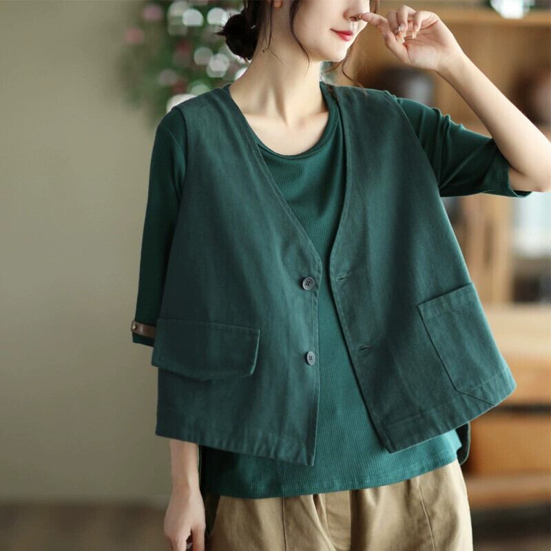 モールビッグネーム撤退最後の在庫女性のレトロ V ネックベストジャケットルーズ痩身ノースリーブコットントップ Vネック sine20719255353