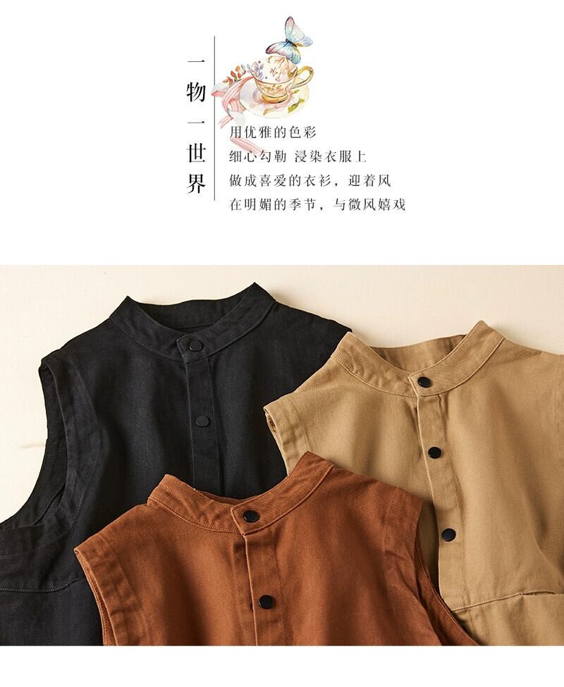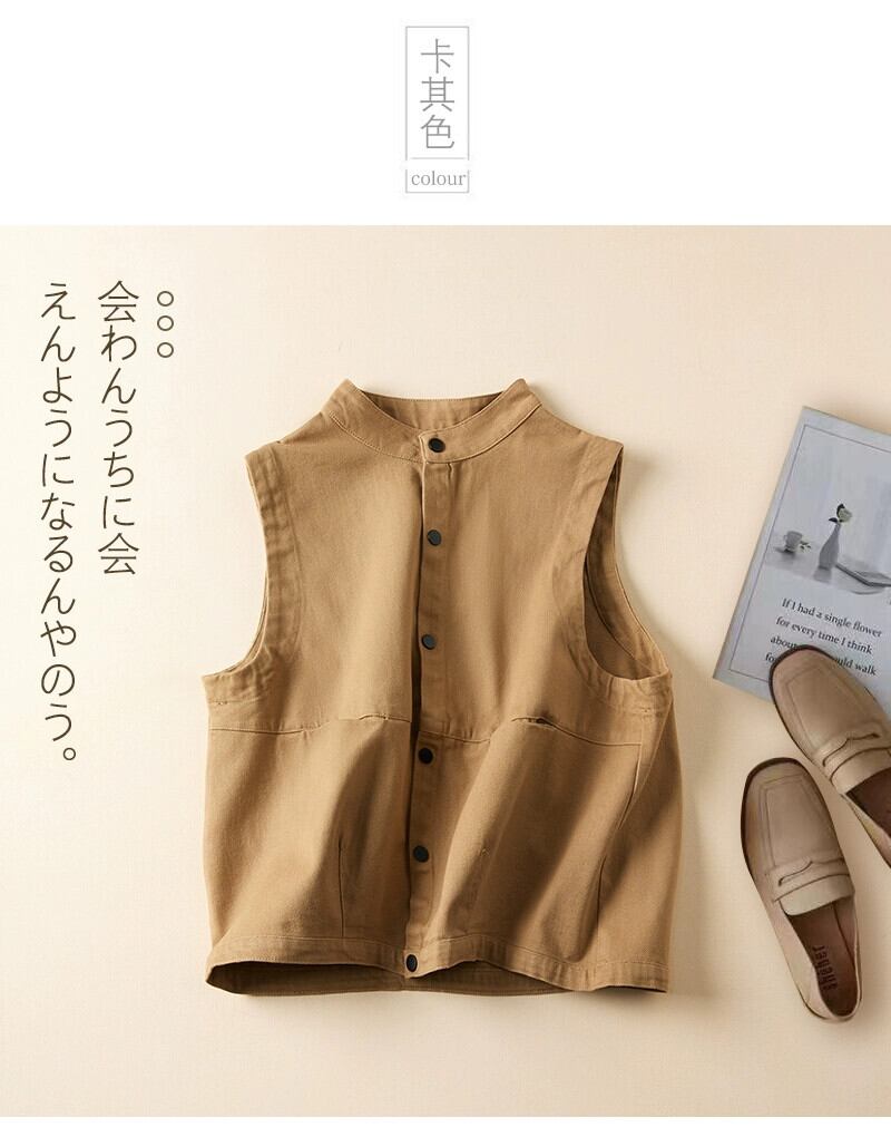 永貿易輸出ビッグブランド尾品撤退女性のレトロなスタンドアップカラーノースリーブトップルーズでスリムなツイルコットンベストジャケット sine97619129796