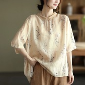 eign trade イタリア高級ブランド カットレーベル リネン 半袖 レディース シャツ 花柄 ドールカラー ラミーコットン トップス sine18168451877