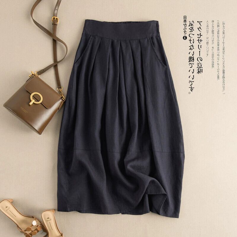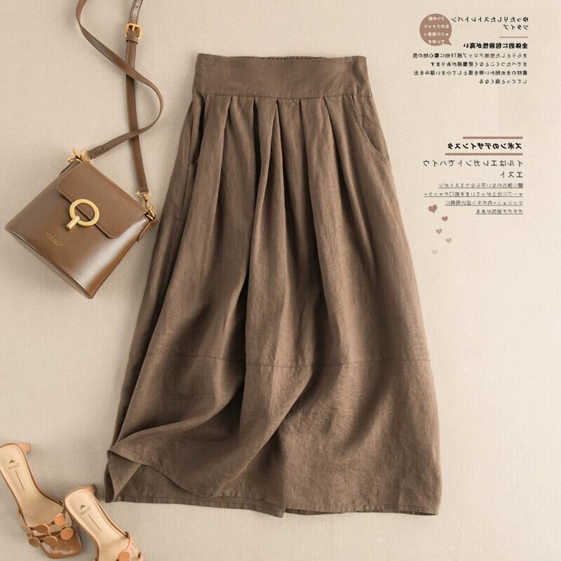 ese とオリジナルのシングル eign 貿易カットオフ商品レディース綿とリネンのスカートレトロ文学ハイウエストカジュアルリネン A ラインロングスカート コットン Aライン sine51713657071