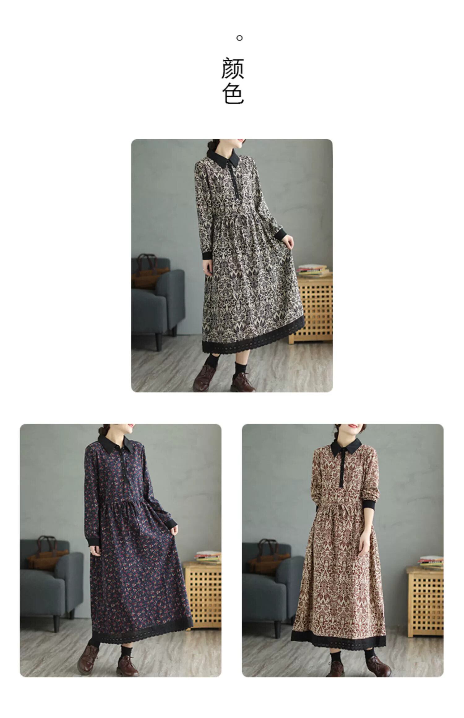 クリアランス漏れ〜女性用のレトロな花柄のコットンとリネンのドレス、ゆったりとしたスリムなリネンのシャツスカート、カウンターで大手ブランドが販売 sine67054219082