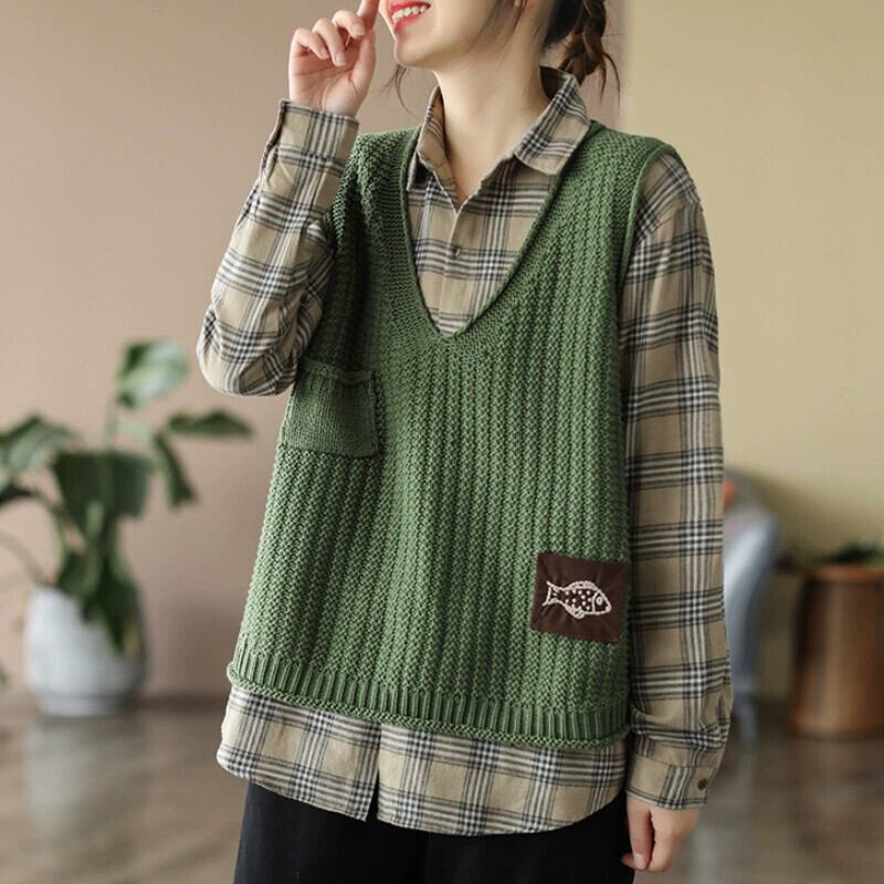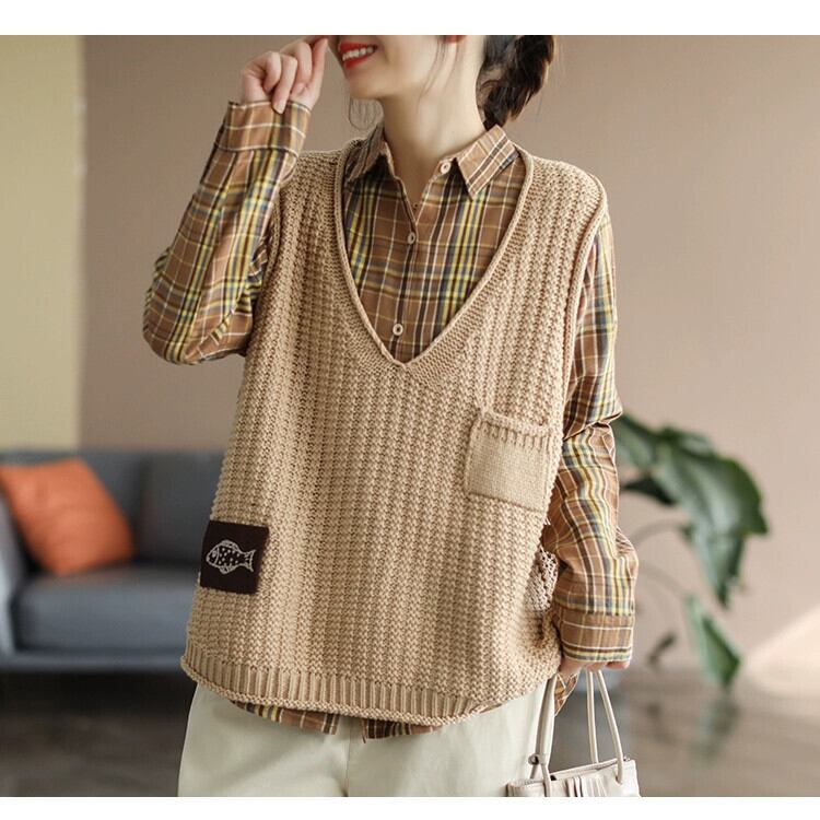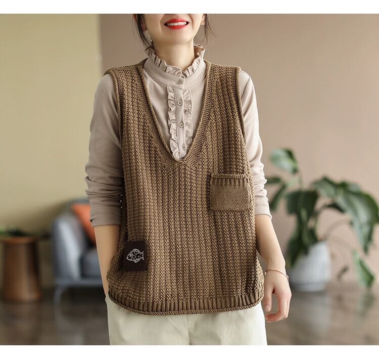 eign trade ese オリジナル注文ビッグブランド撤退女性のカジュアルルーズ V ネックベストトップレトロニットセーターベストアウターウェア Vネック sine62421459698
