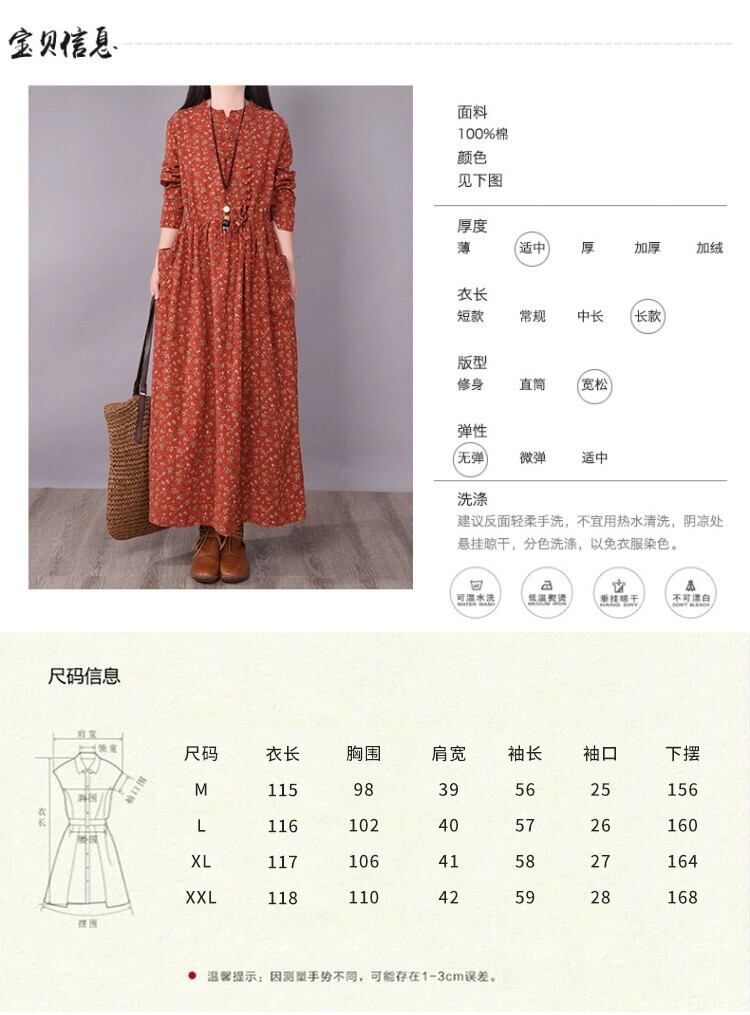 eign trade 輸出ブランドテールグッズ女性のレトロ花柄ラミードレスルーズ大きいサイズプレートボタンコットンリネンロングスカート 大きめサイズ sine99173998316