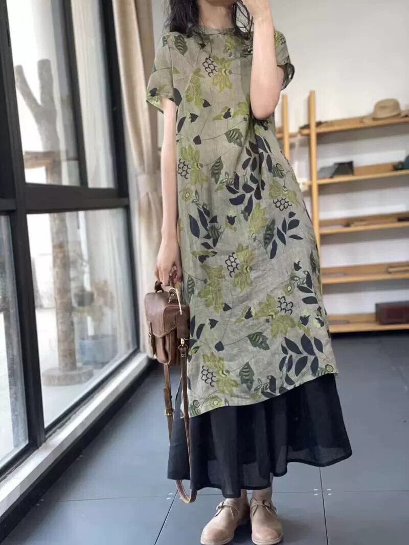 ディスカウントストアショッピングモールの女性の綿とリネン半袖ドレスカジュアルレトロ改良されたラミーチャイナロングドレス夏 コットン サマー 夏物 sine87178972012