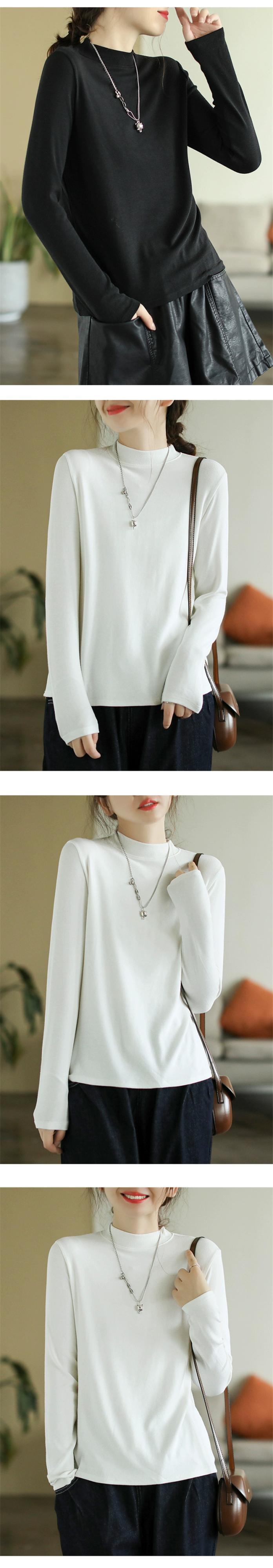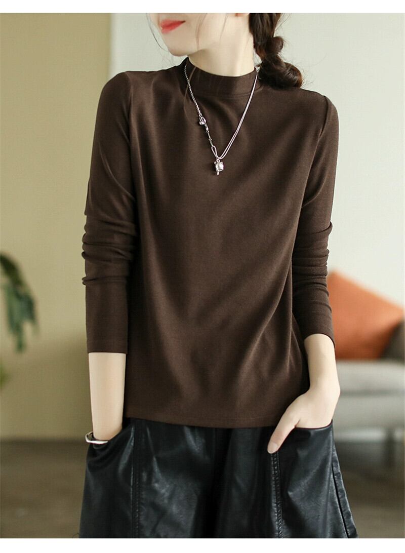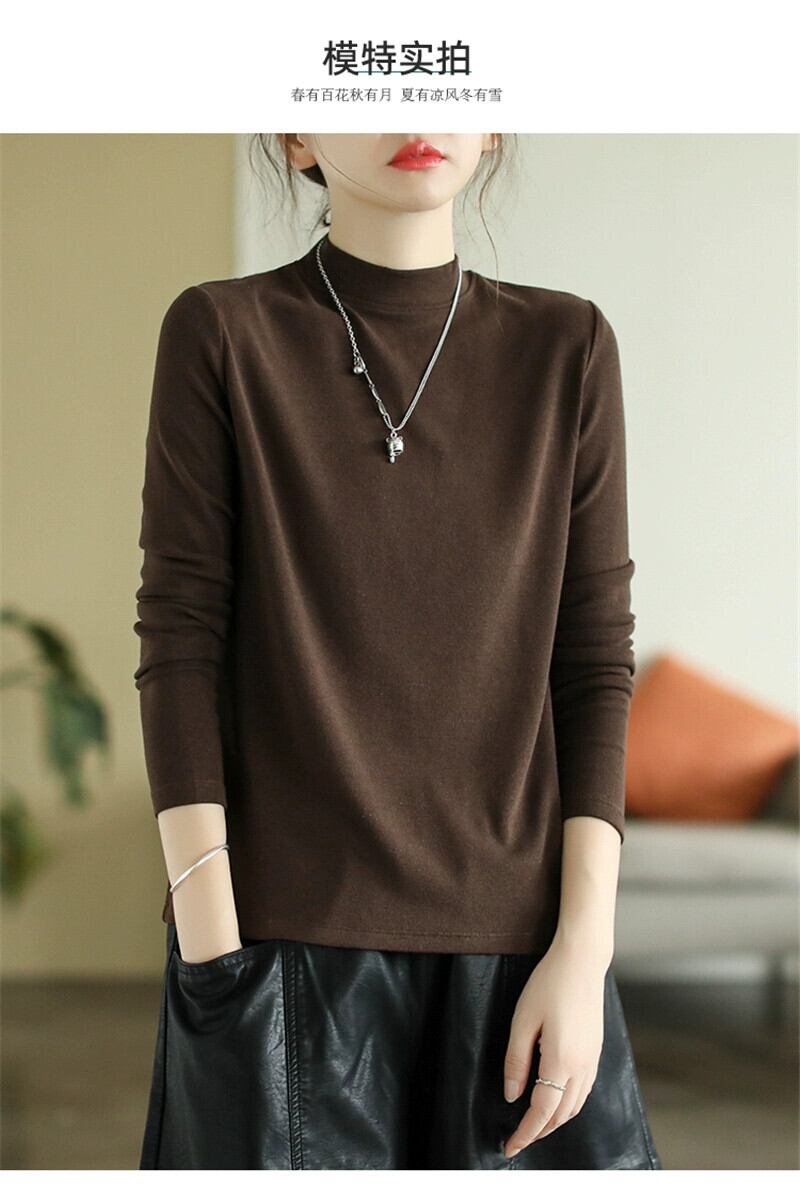 ese オリジナル eign trade 有名な女性の無地多用途ボトムシャツトップ肥厚起毛ハーフタートルネック長袖 T シャツ ロング Tシャツ ソリッドカラー sine88493283123