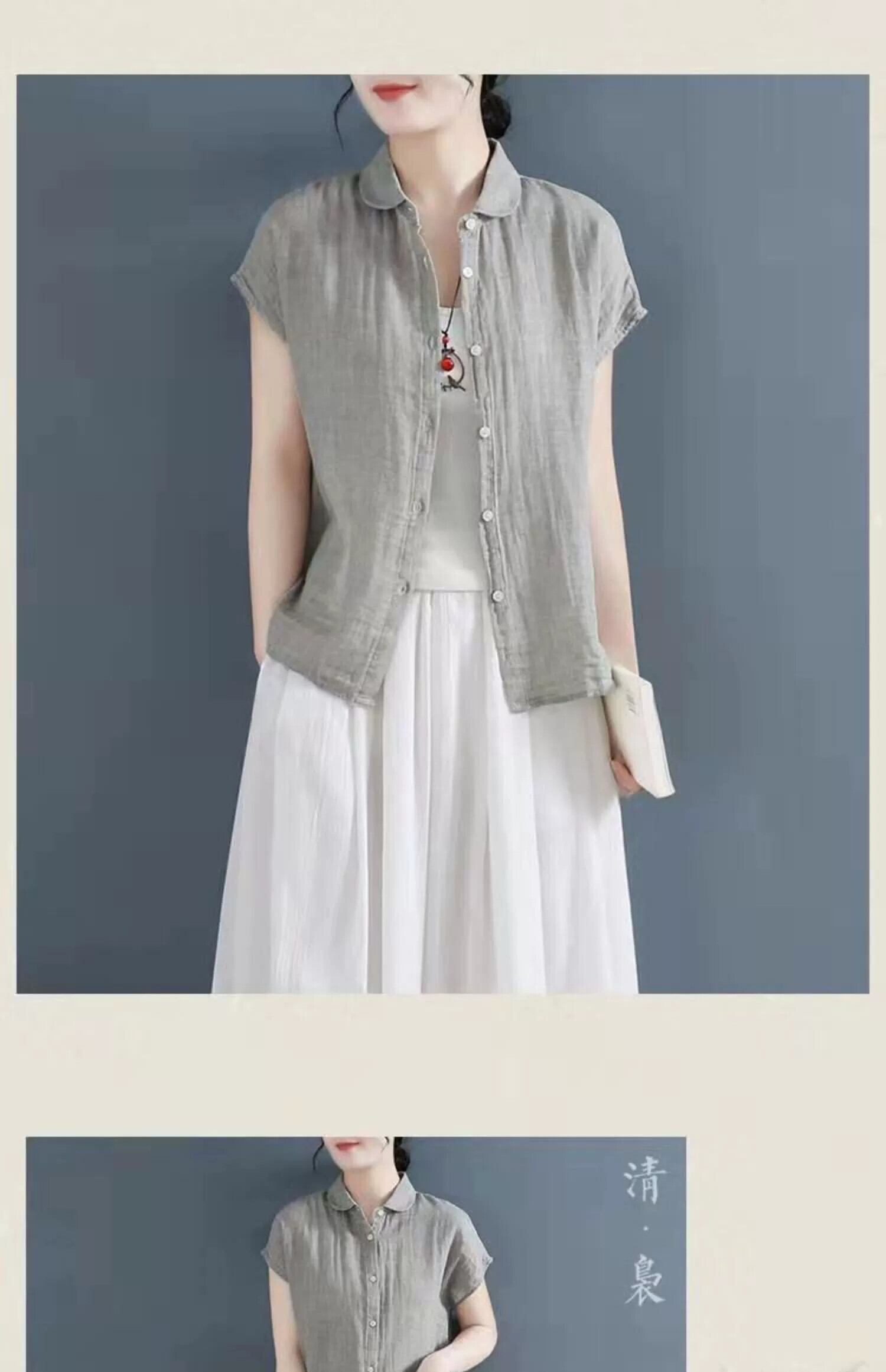 割引eign trade eseとオリジナルシングルテールグッズレディースカットラベルエイジリダクションドールカラー綿麻トップス二層綿糸半袖シャツ コットン sine76393721178