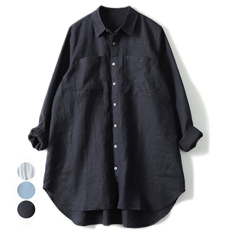 クリアランスリーク〜eseオリジナルシングル多目的ラペルミッドレングスリネントップレディースカジュアルコットンとリネン長袖シャツ秋 ロング オータム 秋物 sine29068488946
