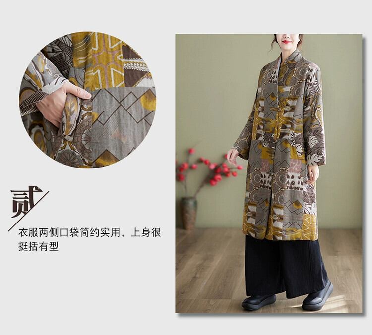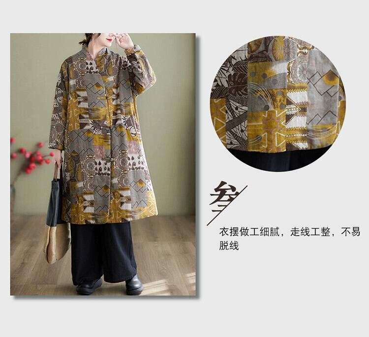 eign trade counter ブランドテールグッズ女性の中国風プリントボタン付きコットンコートジャケットキルティング肥厚ミッドレングスコットンコート冬 ウィンター 冬物 sine41993033776