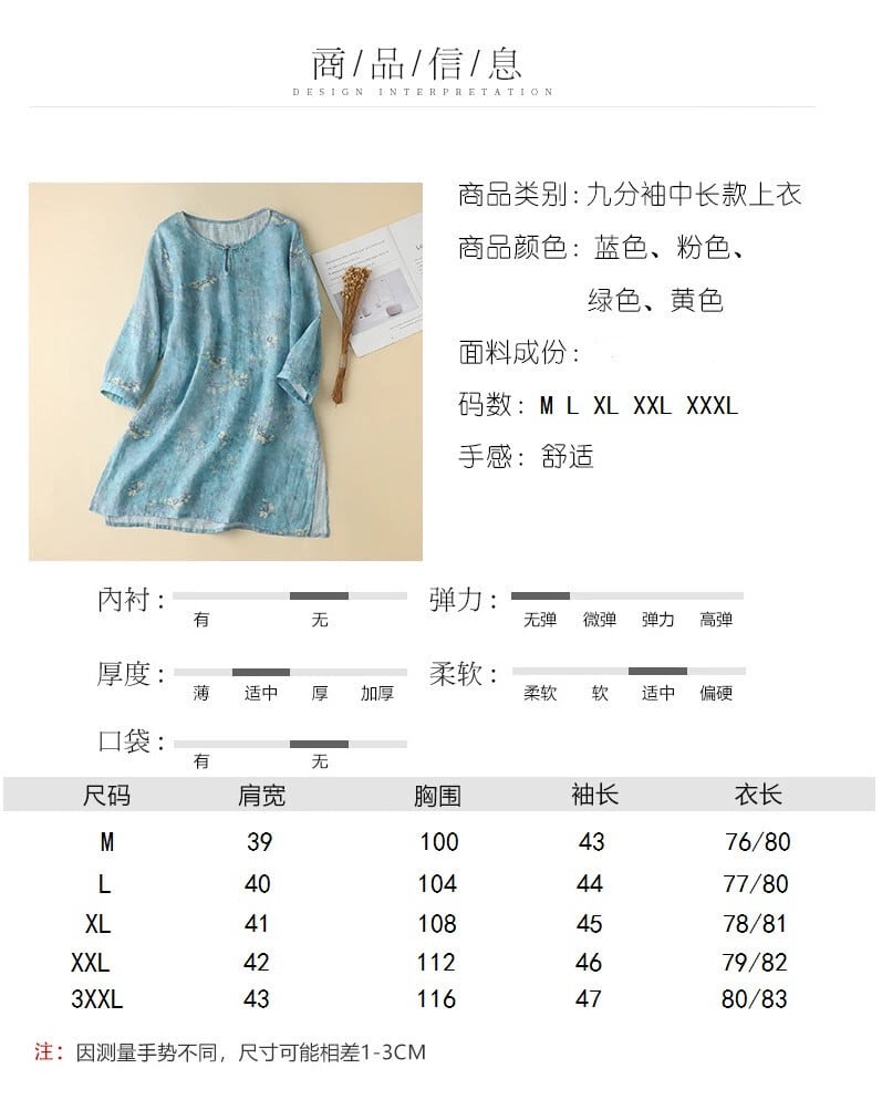 クリアランスクリアランス eign trade オリジナル シングル ese スタイル カット ラベル レディース 綿麻 ミドル丈 トップス 七分袖 リネン ティースーツ Tシャツ コットン sine6363804239