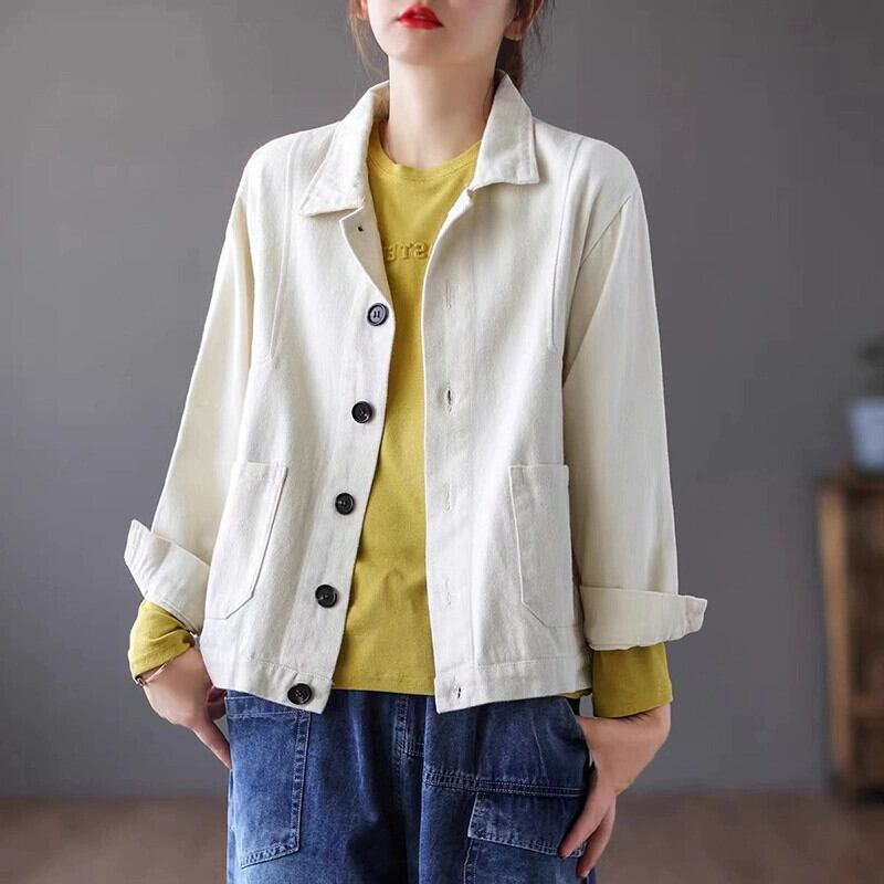 eign trade ese オリジナルオーダー大物撤退レディースレトロワークウェアジャケットルーズカジュアルラペルトップカーディガン sine83020578940