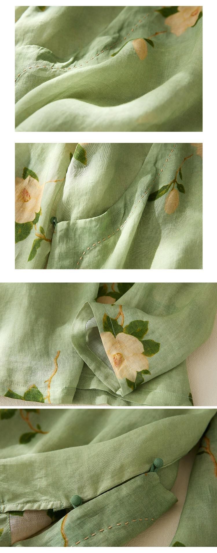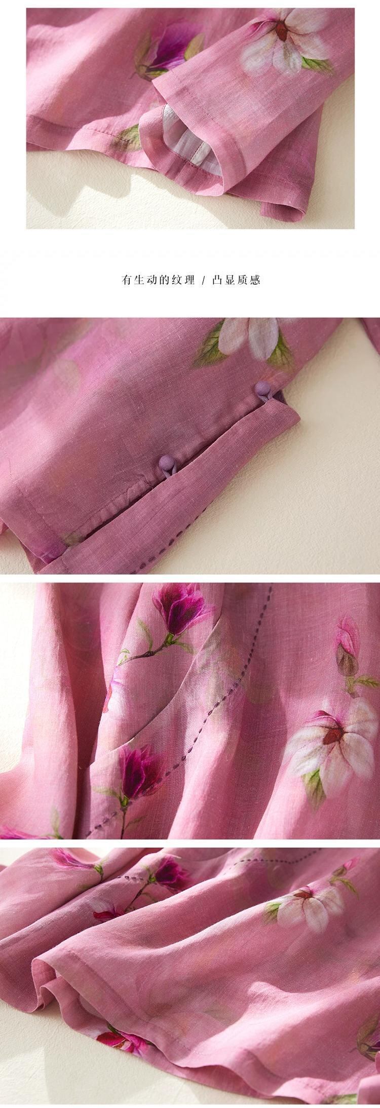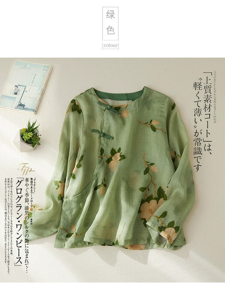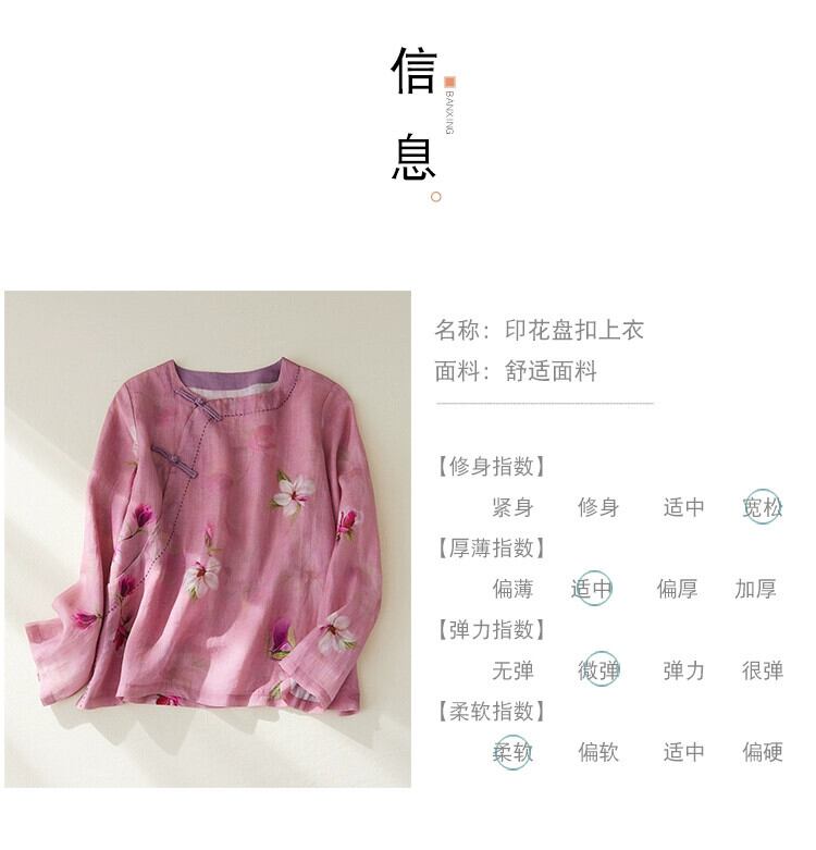 eign trade ese オリジナルハイエンドブランドの女性のレトロ中国バックルリネントップルーズプリントコットンとリネンシャツ秋 オータム 秋物 sine51512005799