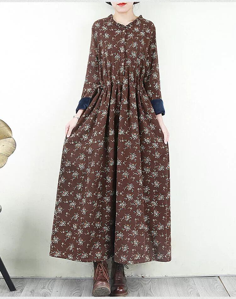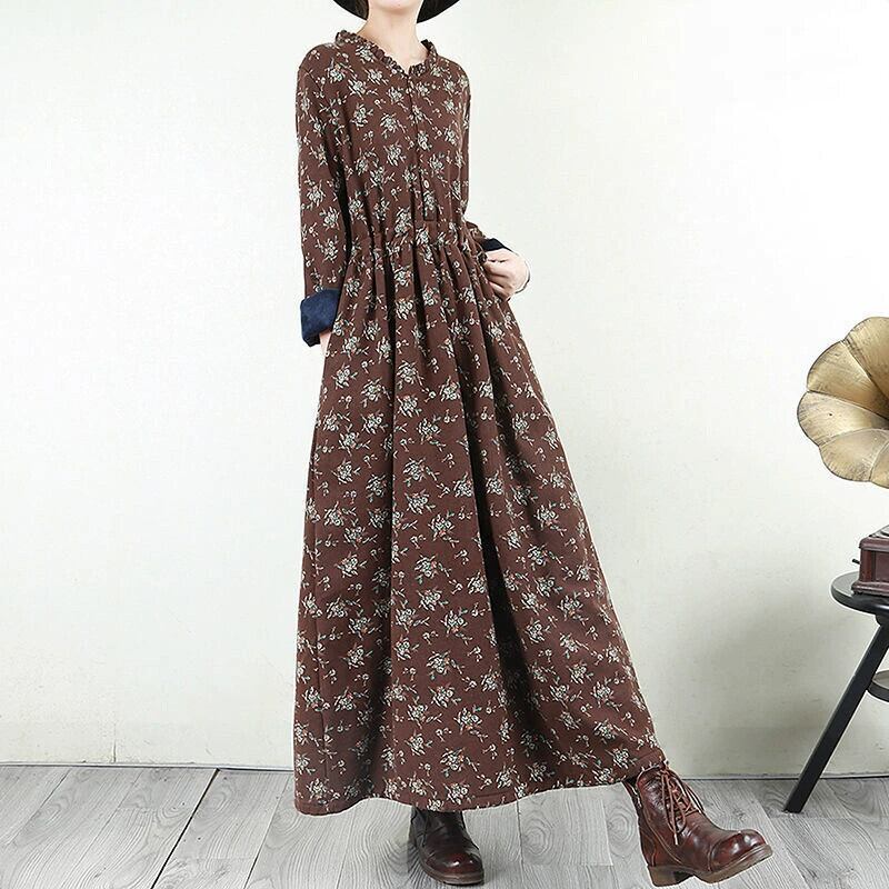 クリアランスクリアランスカウンター牛グッズ除去女性のレトロな花柄ウエストネクタイ大きな裾ロングスカートプラスベルベット肥厚ドレス sine91495620298