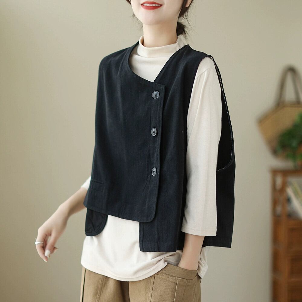 ese オリジナルシングル eign 貿易ビッグネーム女性のレトロツイルコットンベストショルダージャケットルーズ痩身ショートノースリーブトップ 半袖 ハーフスリーブ sine14973954215