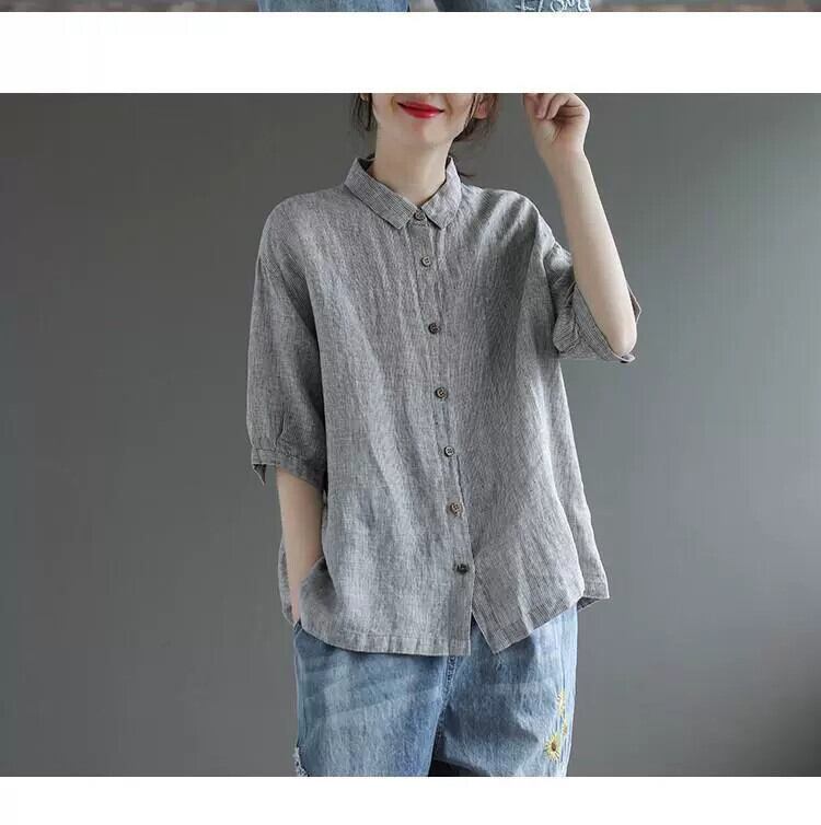 クリアランスリーク〜第一線カウンターブランド割引レディースコットンとリネンラペルカーディガントップスルーズリネン半袖シャツ sine44449357010