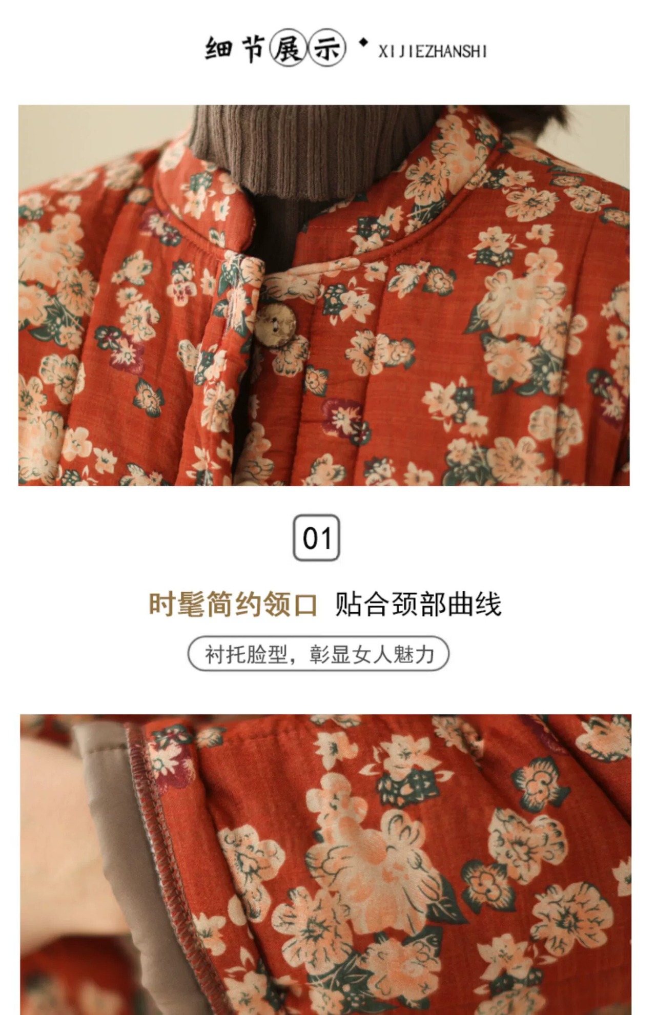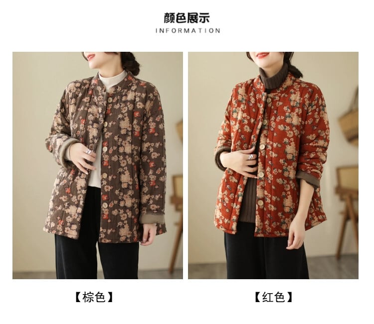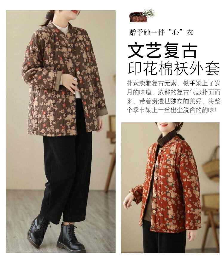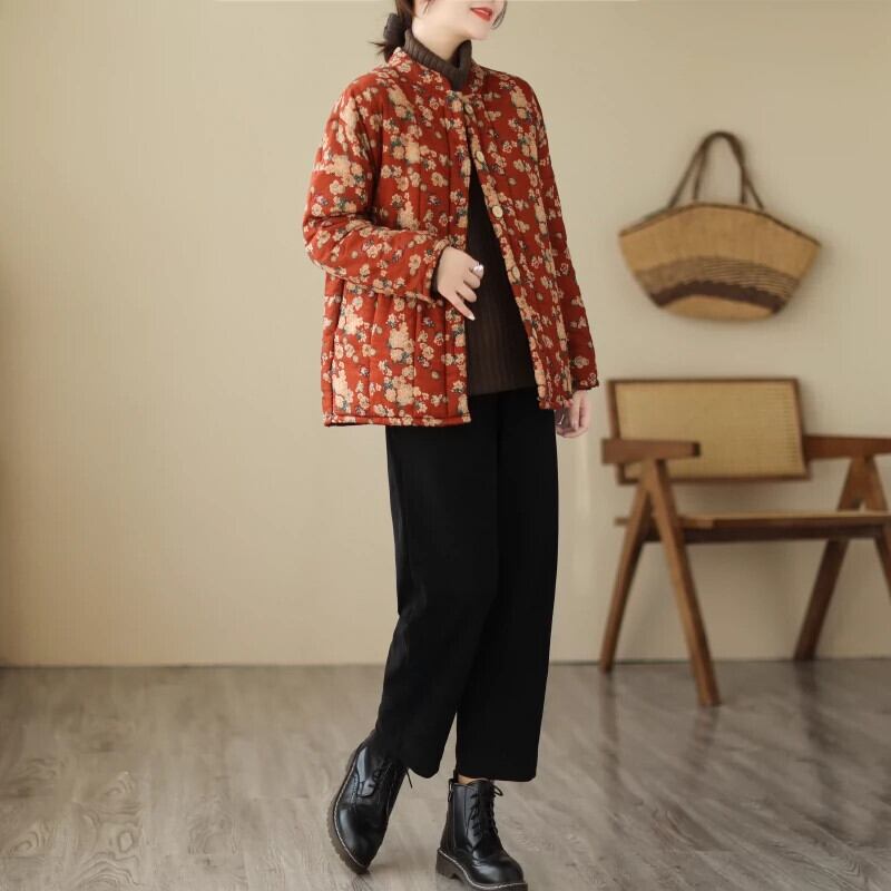 Eign Trade 輸出ブランド テール グッズ レディース レトロ エスニック スタイル 花柄 中綿ジャケット、キルティング 厚く暖かい スタンドカラー コットン コート sine39062890008