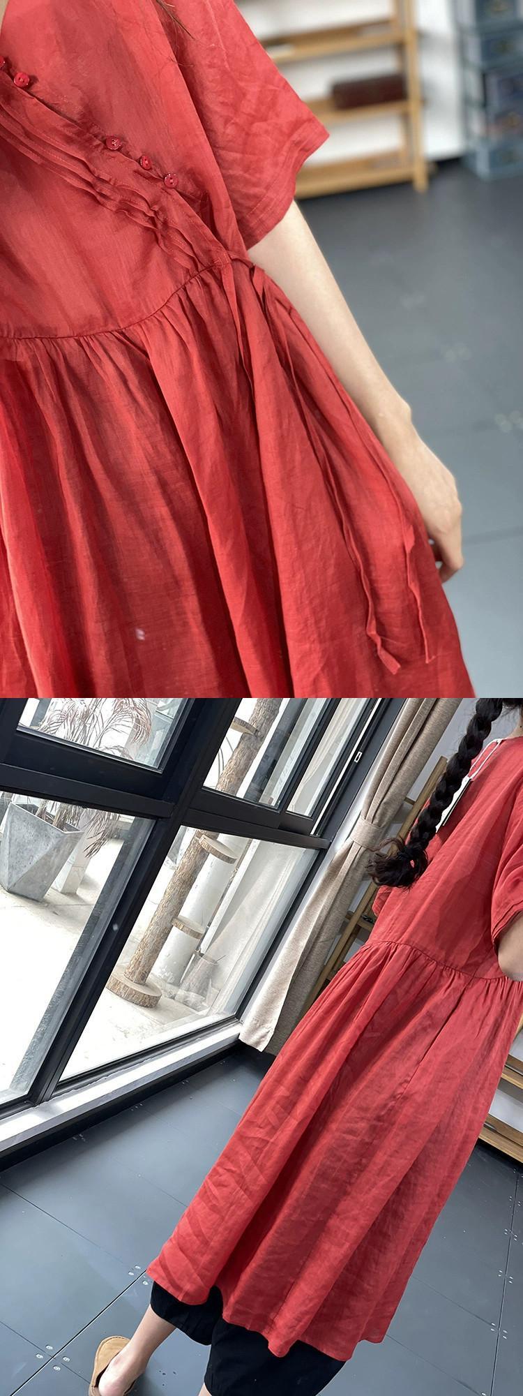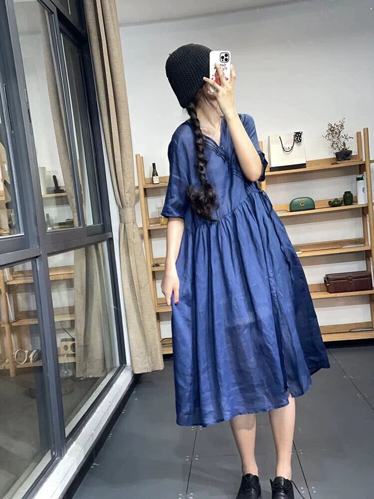 eign trade フランス高級ブランド オーダーメイド レディース ラミー 長袖ローブ Vネック 斜め前立て コットンリネンドレス ロング sine80514569664