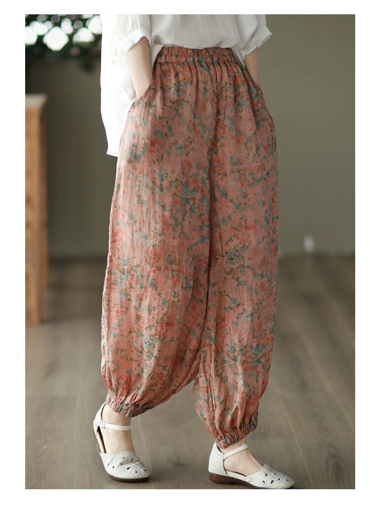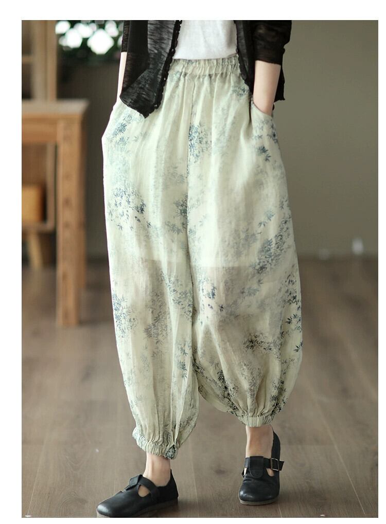 eign trade ese オリジナル シングル ビッグネーム カット ラベル レディース リネン 9 ポイント ブルマー パンツ カジュアル ルーズ レッグタイ コットンとリネン ハーレム パンツ sine26456926623