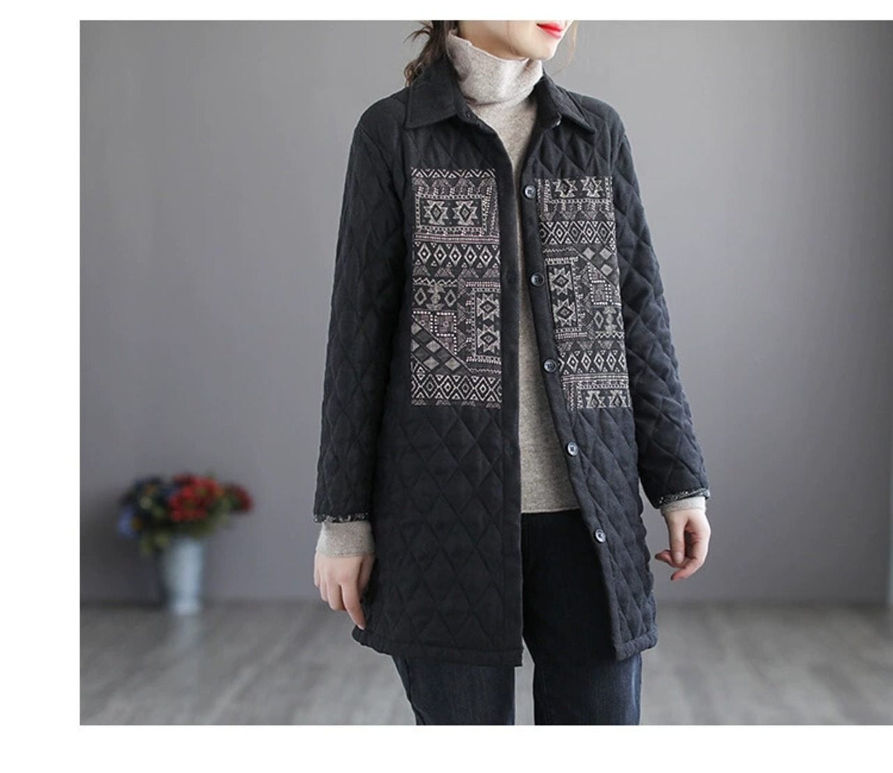 クリアランスカウンターストア撤退最終在庫婦人服厚く暖かい綿ジャケットレトロキルティングミッドレングスコットンコート sine85994019098