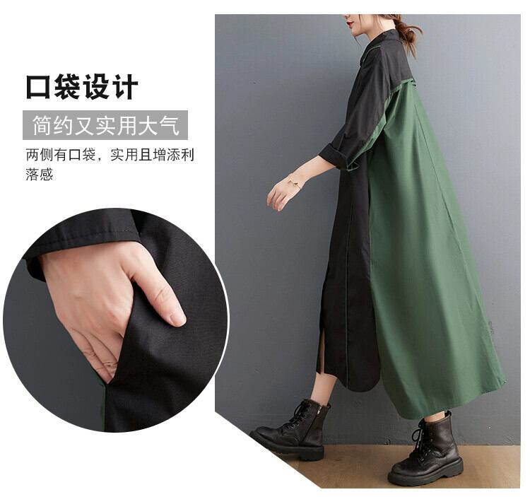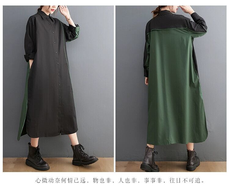 第一線ブランド eign trade 最終在庫レディースコントラストラペルミドル丈シャツドレスルーズ長袖カーディガンドレス ロング sine35755095828