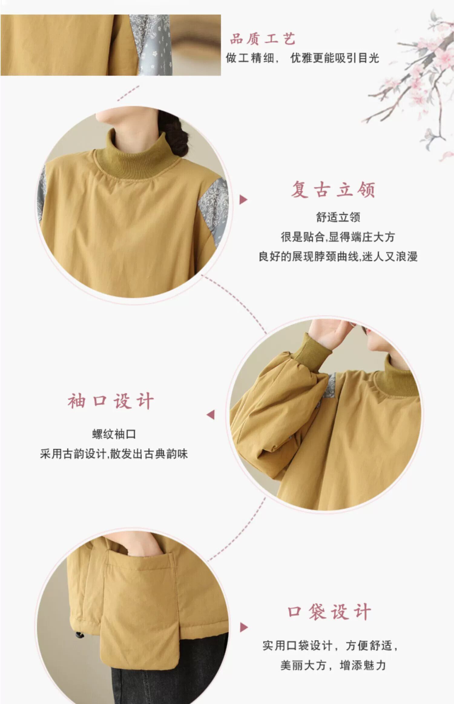 ディスカウント ストア ショッピング モール撤退女性のレトロな花柄キルティング タートルネック スウェットシャツ緩い肥厚暖かい綿のコート コットン sine55847086993