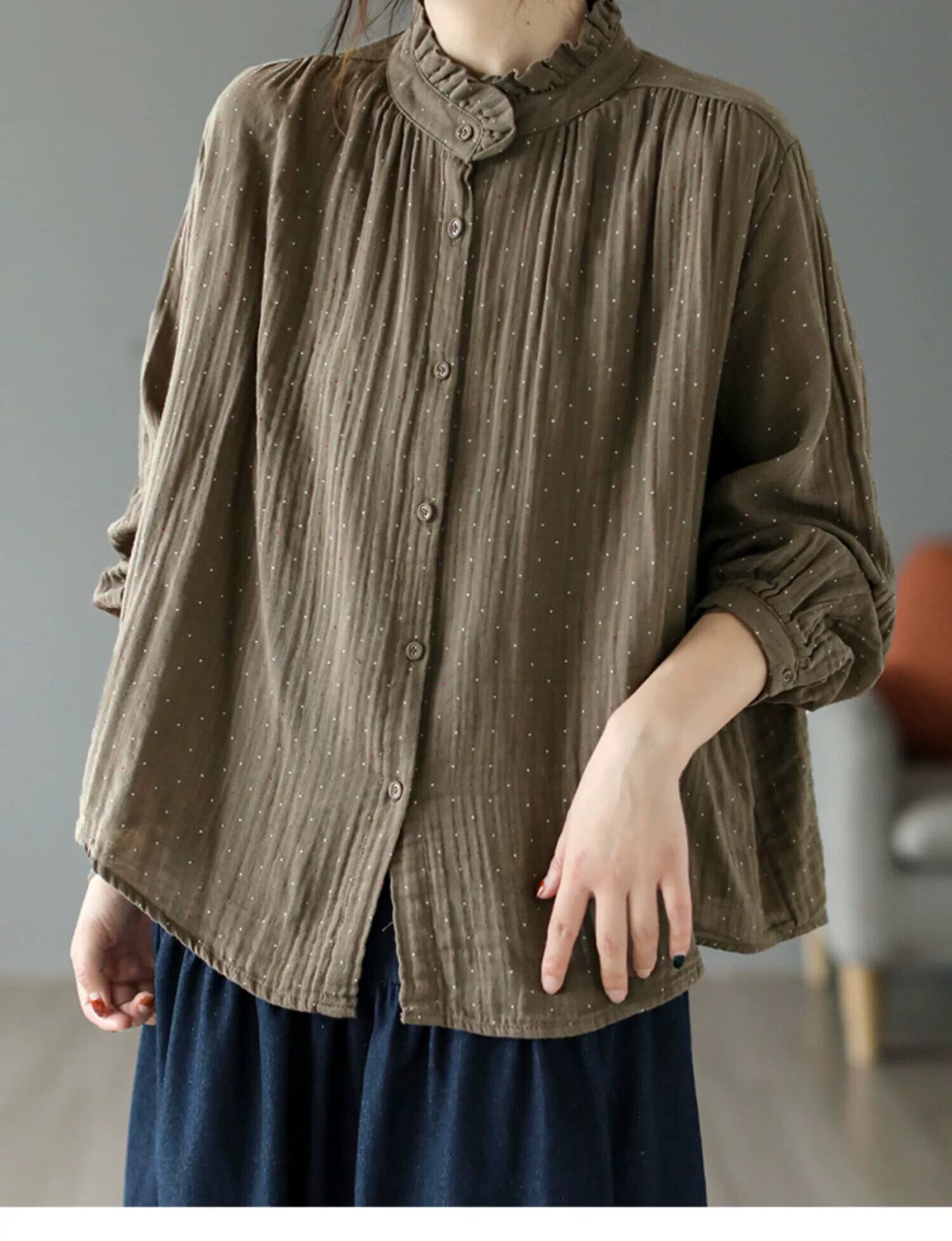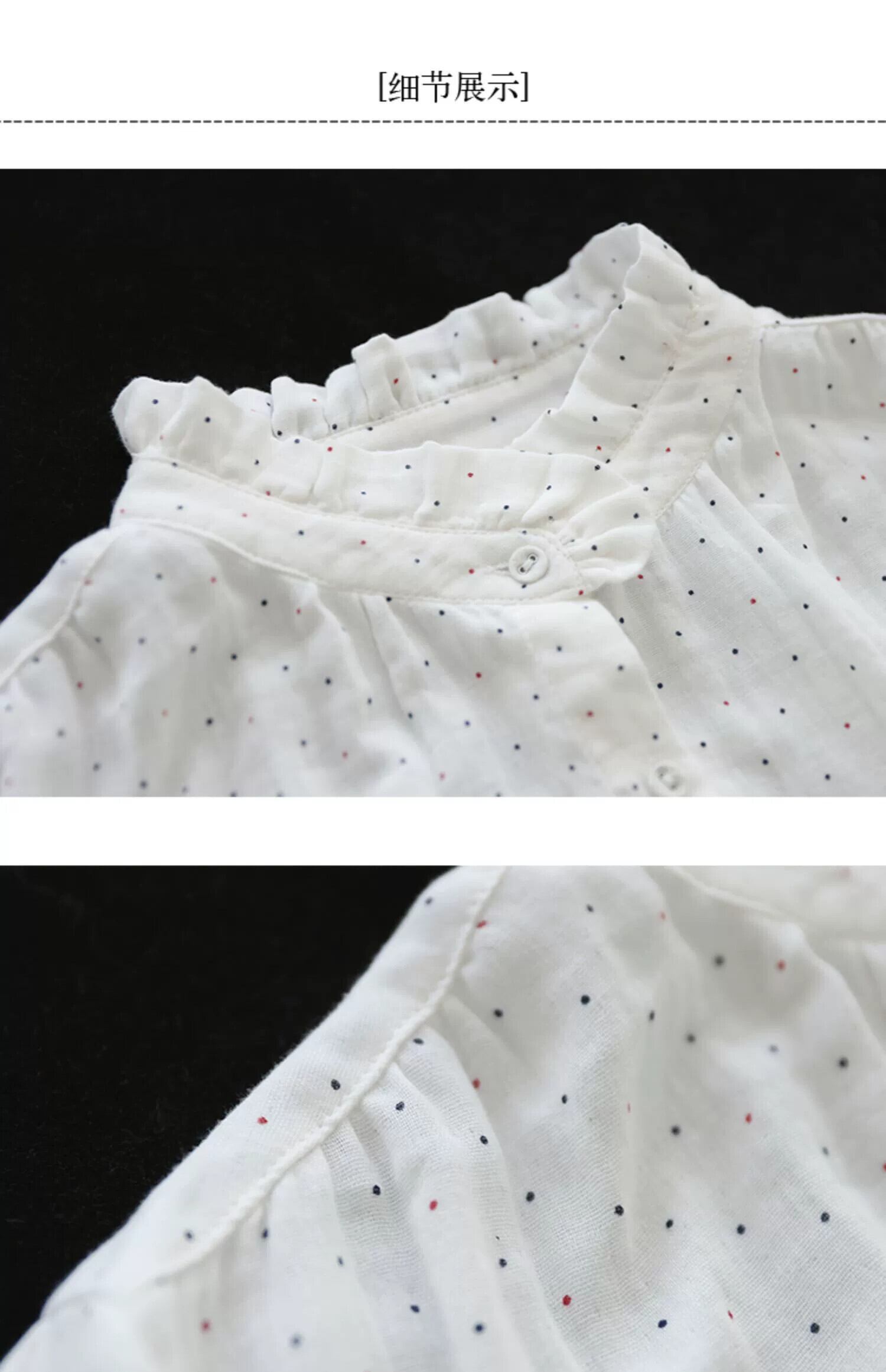クリアランスクリアランスカウンター牛グッズ除去レディースレトロ長袖水玉シャツゆったり着痩せ菌エッジスタンドカラートップ ロング sine29055679209