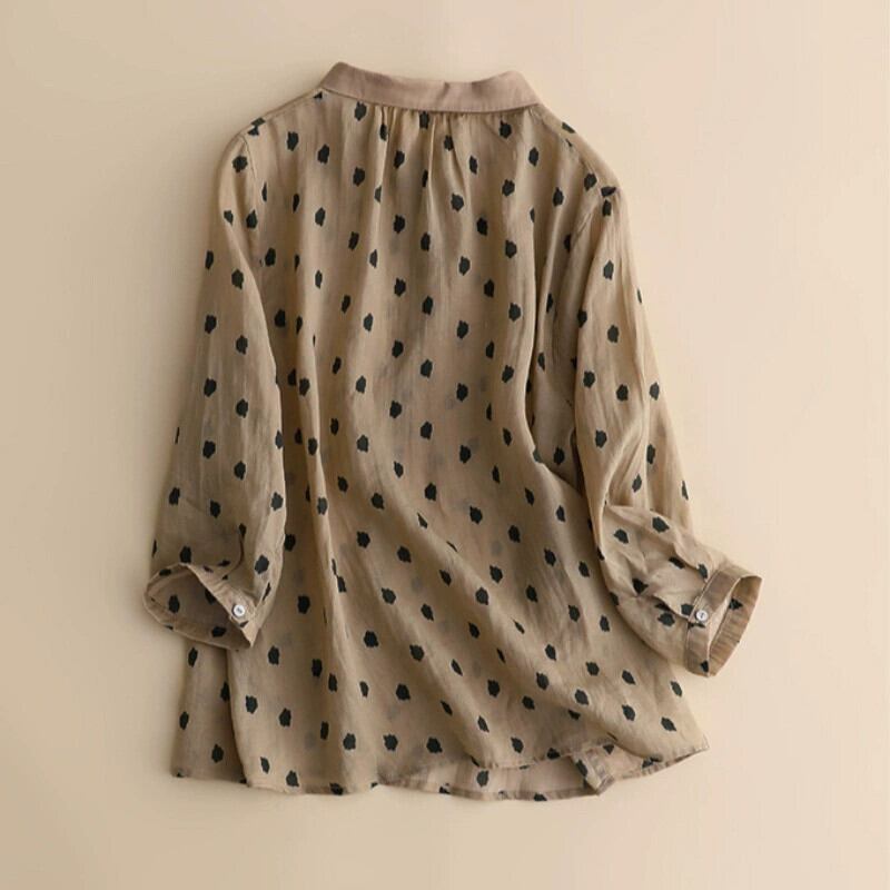 クリアランスリーク〜既製のエセ風水玉ラミーシャツレディース、ゆったりカジュアルリネン長袖シャツ ロング sine29004611630