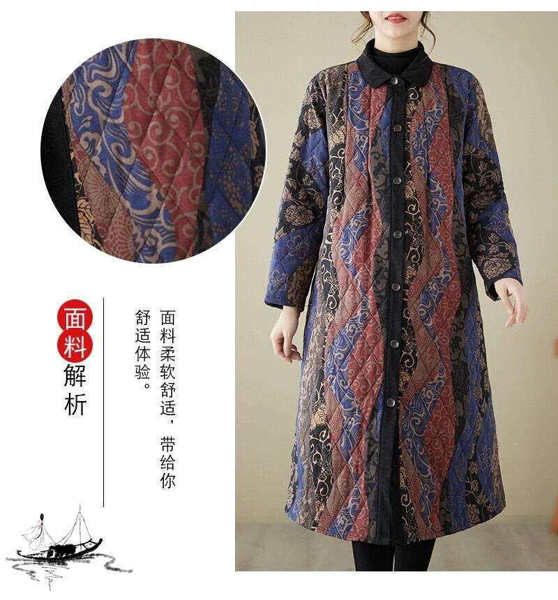 クリアランスクリアランスカウンター牛グッズ除去レディースレトロ花柄ミドル丈コットンジャケットキルティング厚く暖かいコットンコート sine89812331183