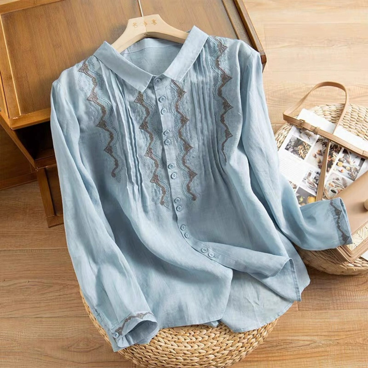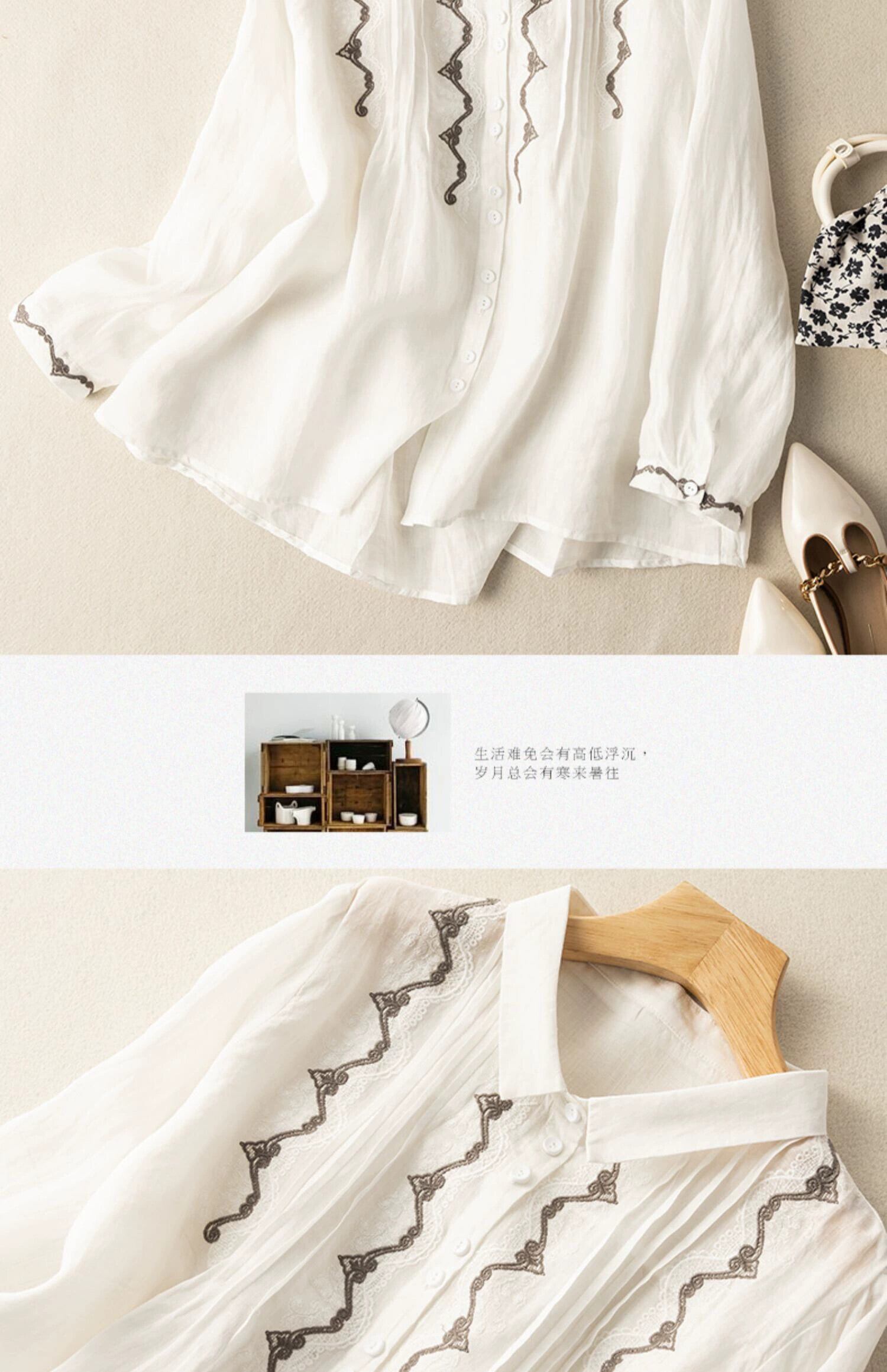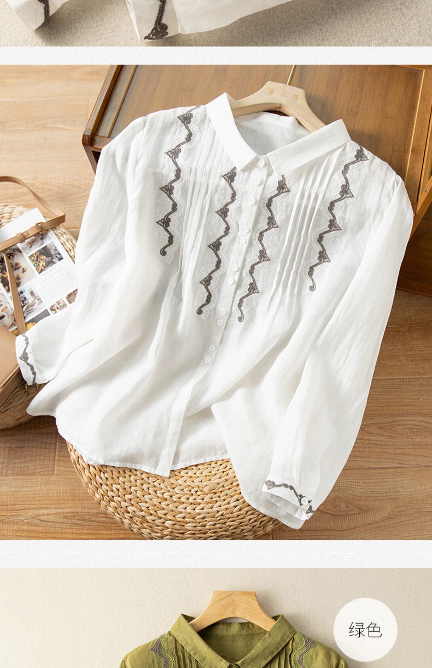 有名な既製の女性用レトロ刺繍入りラミーラペル シャツ ルーズ コットンとリネンのシングルブレスト トップをクリアランス カウンターで撤去 レッド sine75601278103