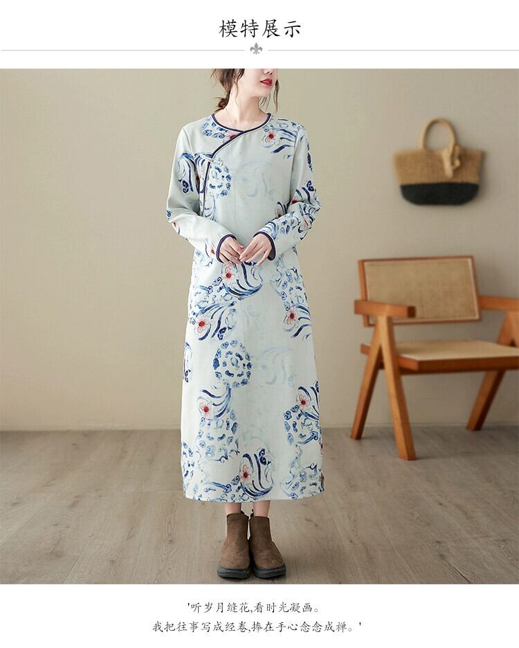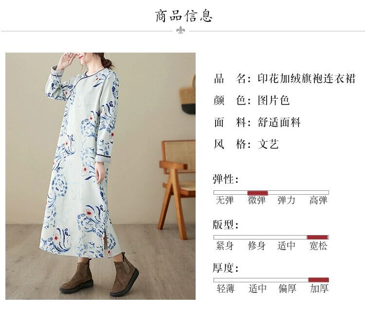 ビッグブランドのテールグッズのクリアランスカウンターの削除女性の中国風の改良されたチャイナドレスとベルベットと厚みのある青と白の磁器のロングスカート ホワイト ブルー sine71108312872