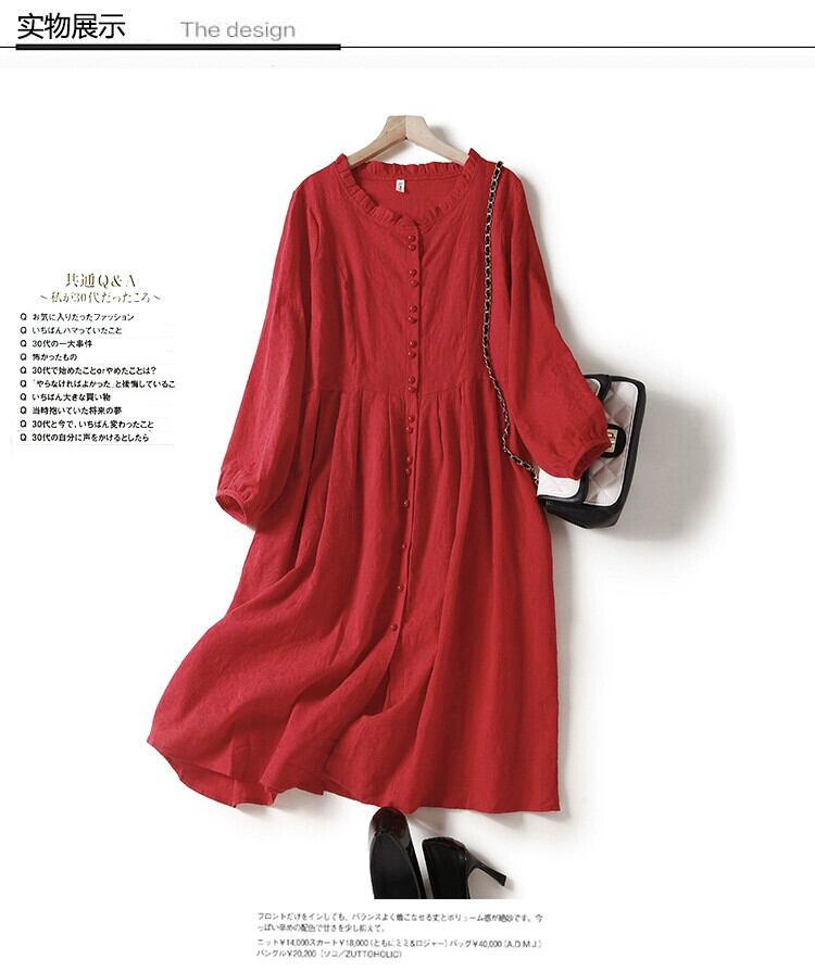 クリアランスブランド牛グッズカウンター最終在庫レディースレトロジャカードカーディガンラミーミッドレングススカートルーズコットンとリネンドレス sine26448708908