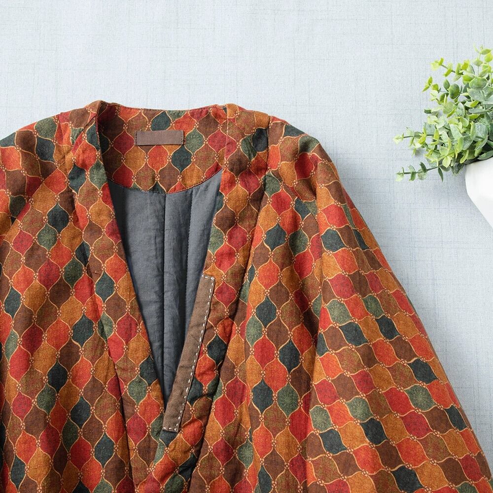 第一線ブランドのショッピングモールの女性の冬中国のレトロなプリント V ネック綿入りジャケット コットン ウィンター 冬物 Vネック sine8169155506